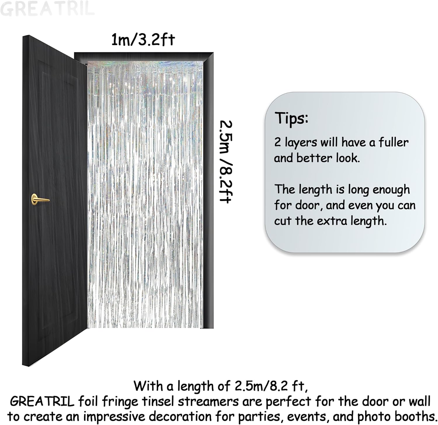 Silver Foil Fringe Tinsel Backdrop - GREATRIL Metallic Tinsel Streamers Curtains for 2025 NYE/Prom/Dancing Ball/Christmas/Bachelorette Party Decorations - Pack of 2