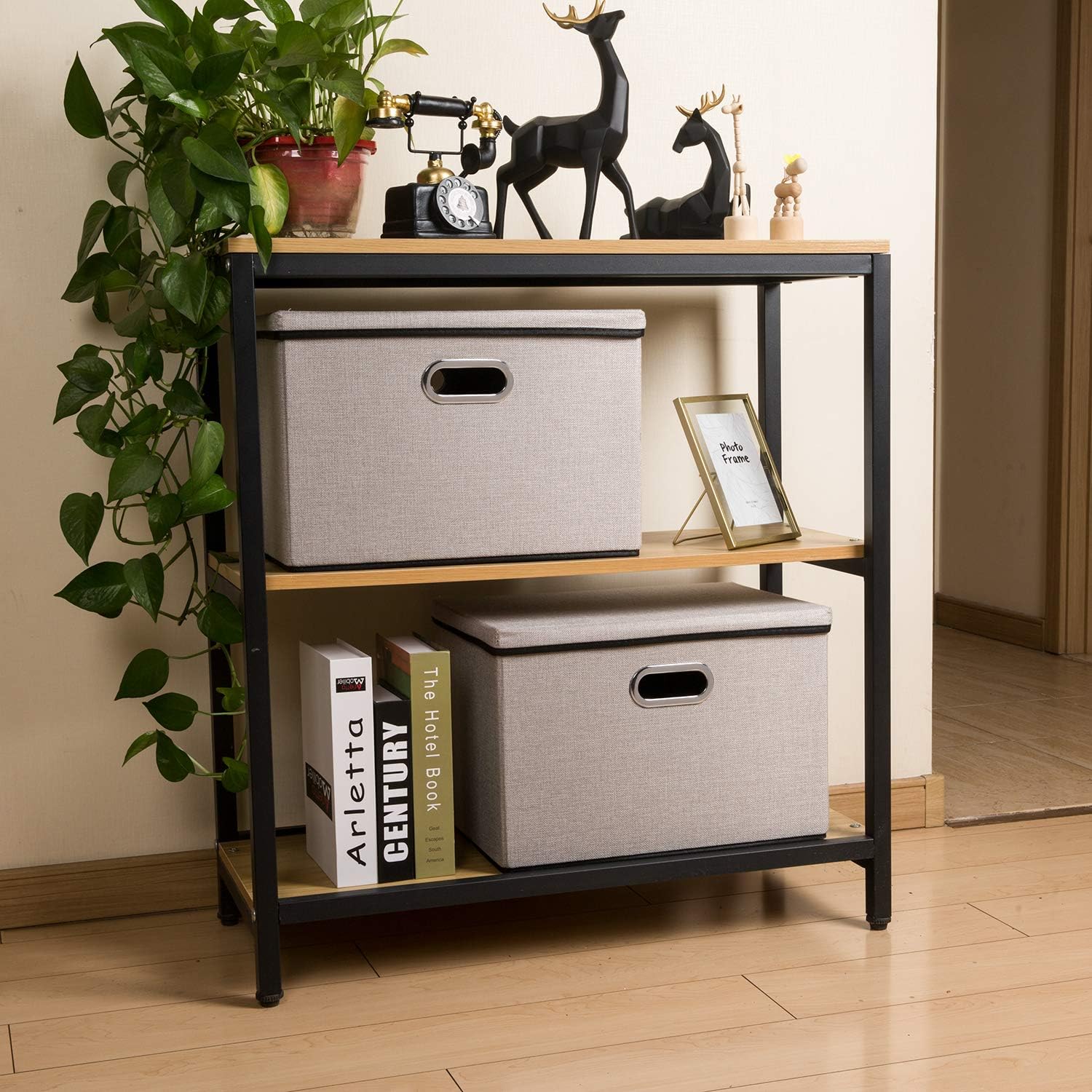 PRANDOM Large Foldable Storage Bins with Lids [3-Pack] linenFabric Decorative Storage Boxes Organizer Containers Baskets Cube with Handles Divider for Bedroom Closet Office Light Grey(17.7x11.8x11.8)