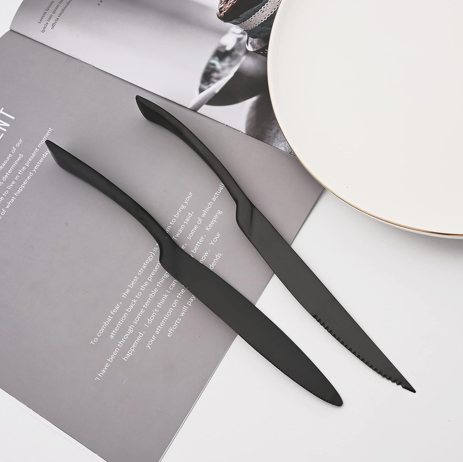 - MATTE FLATWARE SET 24 PIECES: Dinner Knife, Steak Knife, Dinner Spoon, Dinner Fork,Dessert Spoon, Salad Fork.