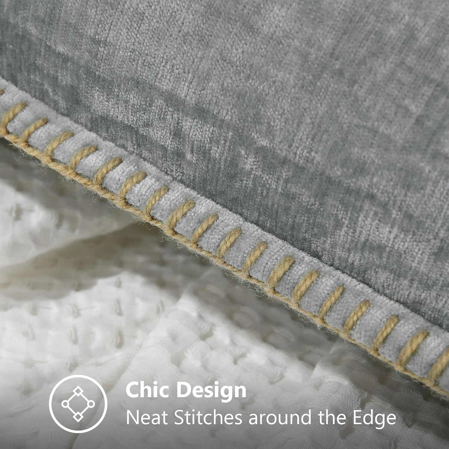 decorUhome Chenille Soft Throw Pillow Covers 20x20 Set of 2, Farmhouse Velvet Neutral Decorative Euro Pillow Covers with Stitched Edge for Couch Sofa Bed Home Decor, Neutral Gray
