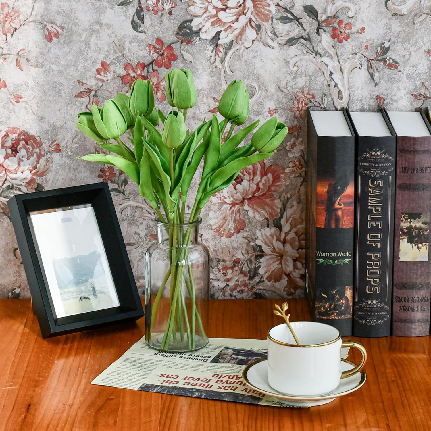 Mandy's Artificial Tulips 20 Stems Green PU Faux Flowers for Wedding Home Decor 13.5 Inch