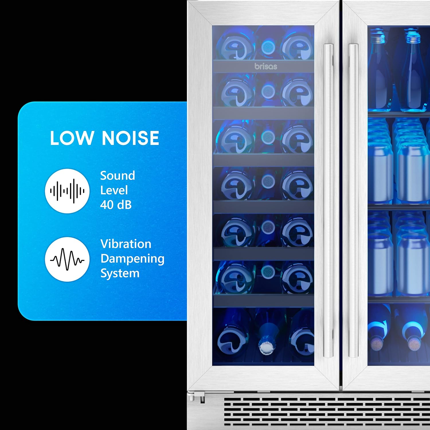 Zephyr Brisas 24 Inch Wine Fridge Dual Zone Under Counter Countertop Wine and Beverage Cooler Cabinet Home Bar Drink Beer Freestanding Refrigerator with French Door 21 Bottles 64 cans