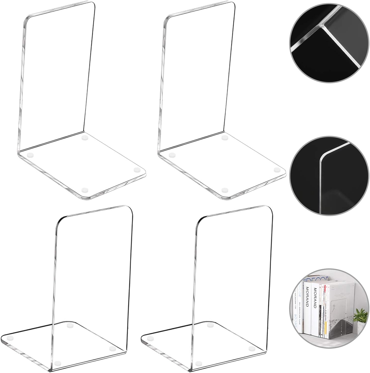Lulonpon 4 Pieces Book Ends, Bookends, Books End for Shelves, Books End for Heavy Books, Clear Bookends, Acrylic Book Ends for School, Library,Desktop Organizer and Book Shelves