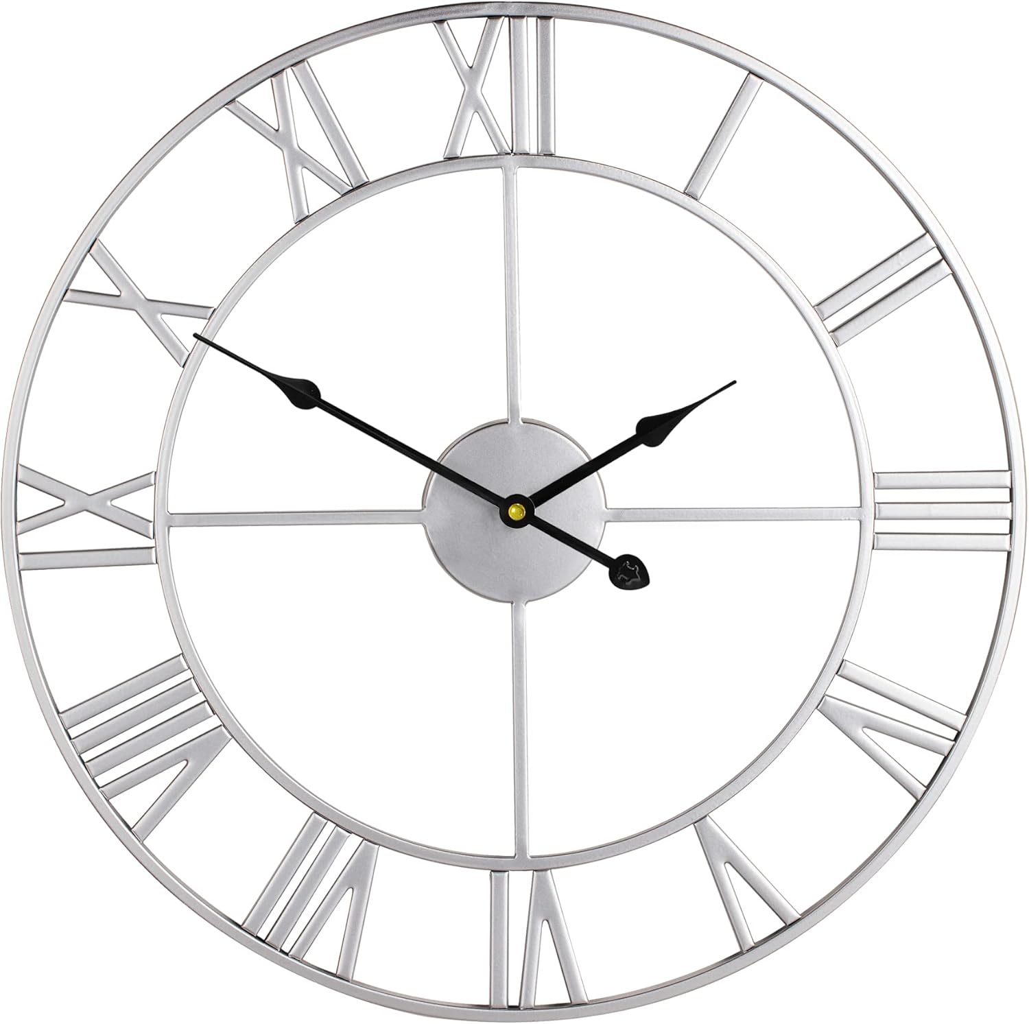 LEIKE 24" Modern Large Wall Clocks,Vintage, Round,Silent Non Ticking,Battery Operated,Silver Metal Roman Numerals Clock for Living Room/Bedroom/Kitchen Decor