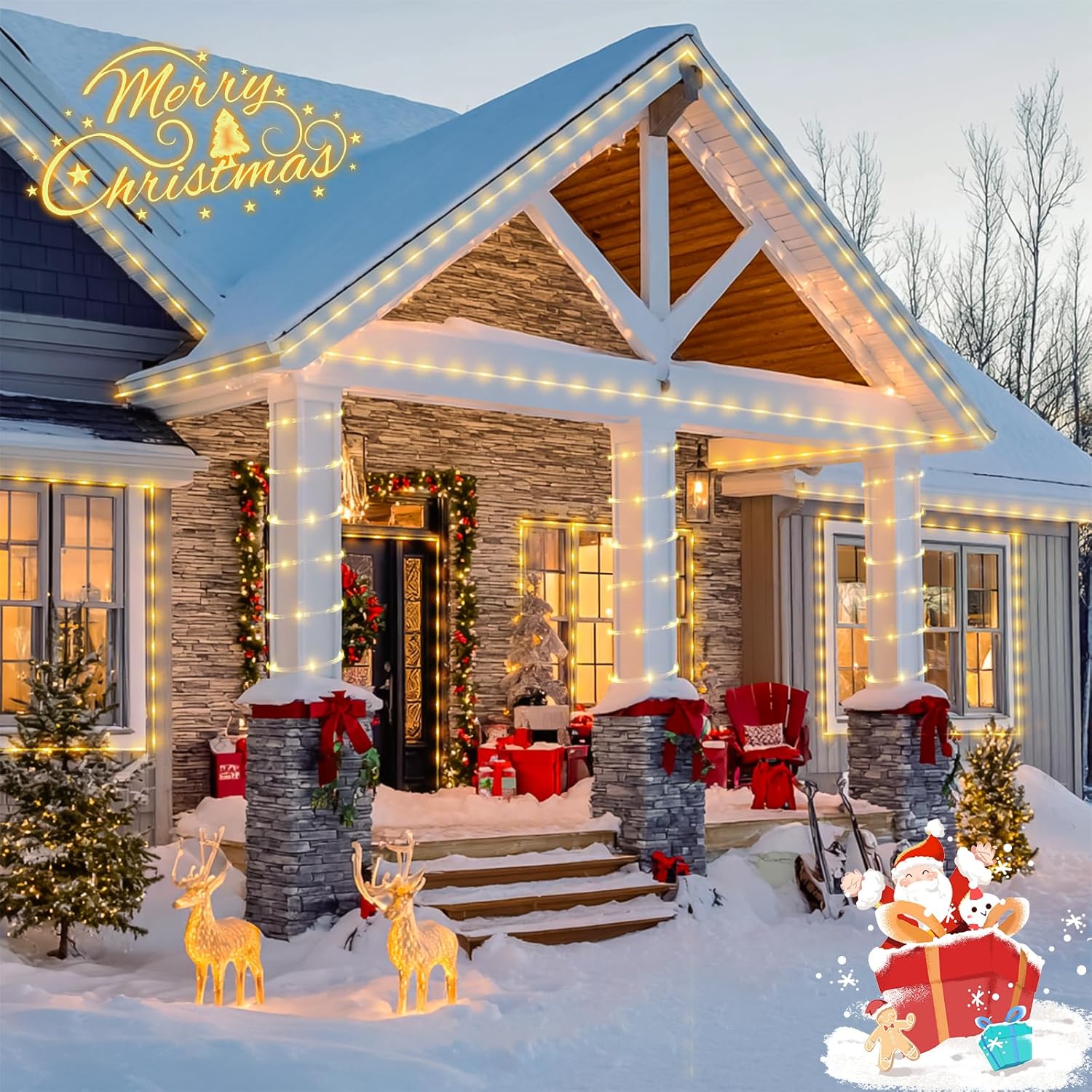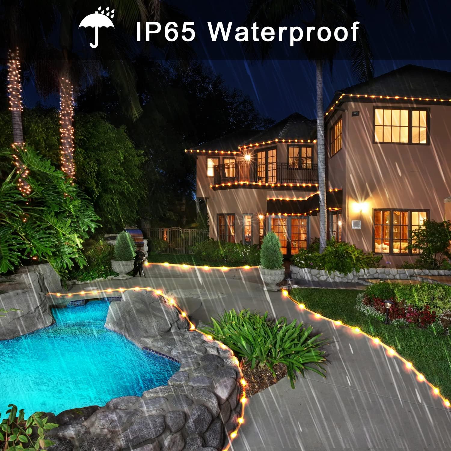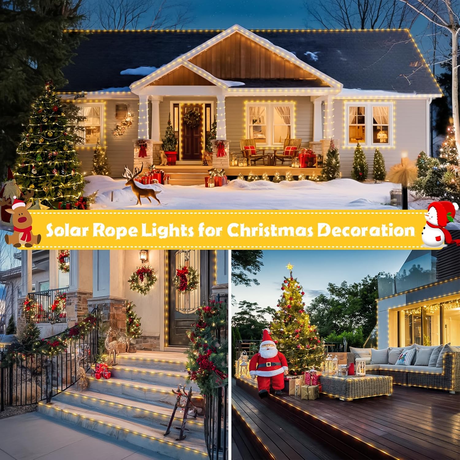 JMEXSUSS 2 Pack 100 LED Solar Rope Lights,33ft 8 Modes Solar Rope Lights Outdoor Waterproof LED Solar Powered Rope Tube for Trampoline,Fence,Gazebo,Yard,Walkway,Path(Warm White)