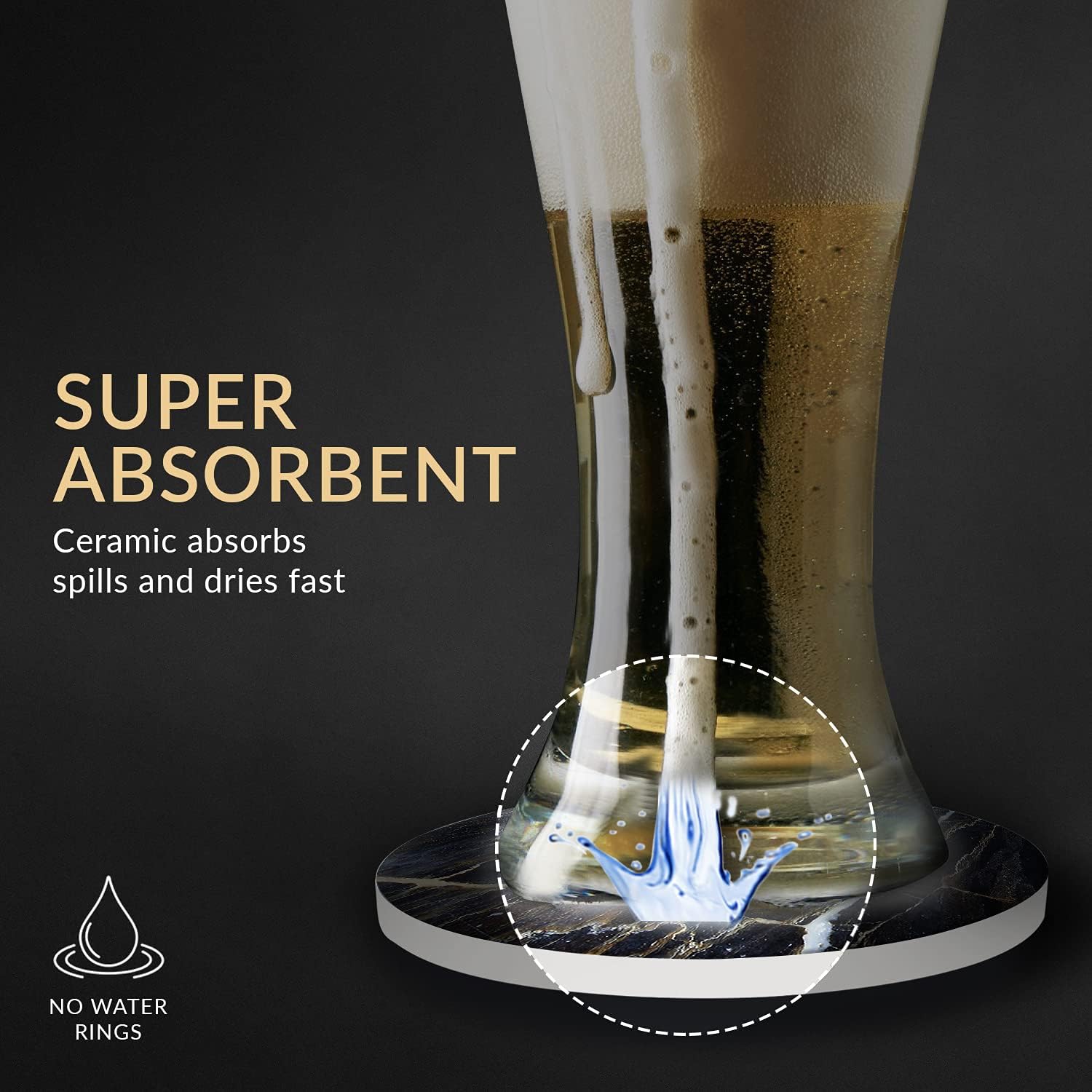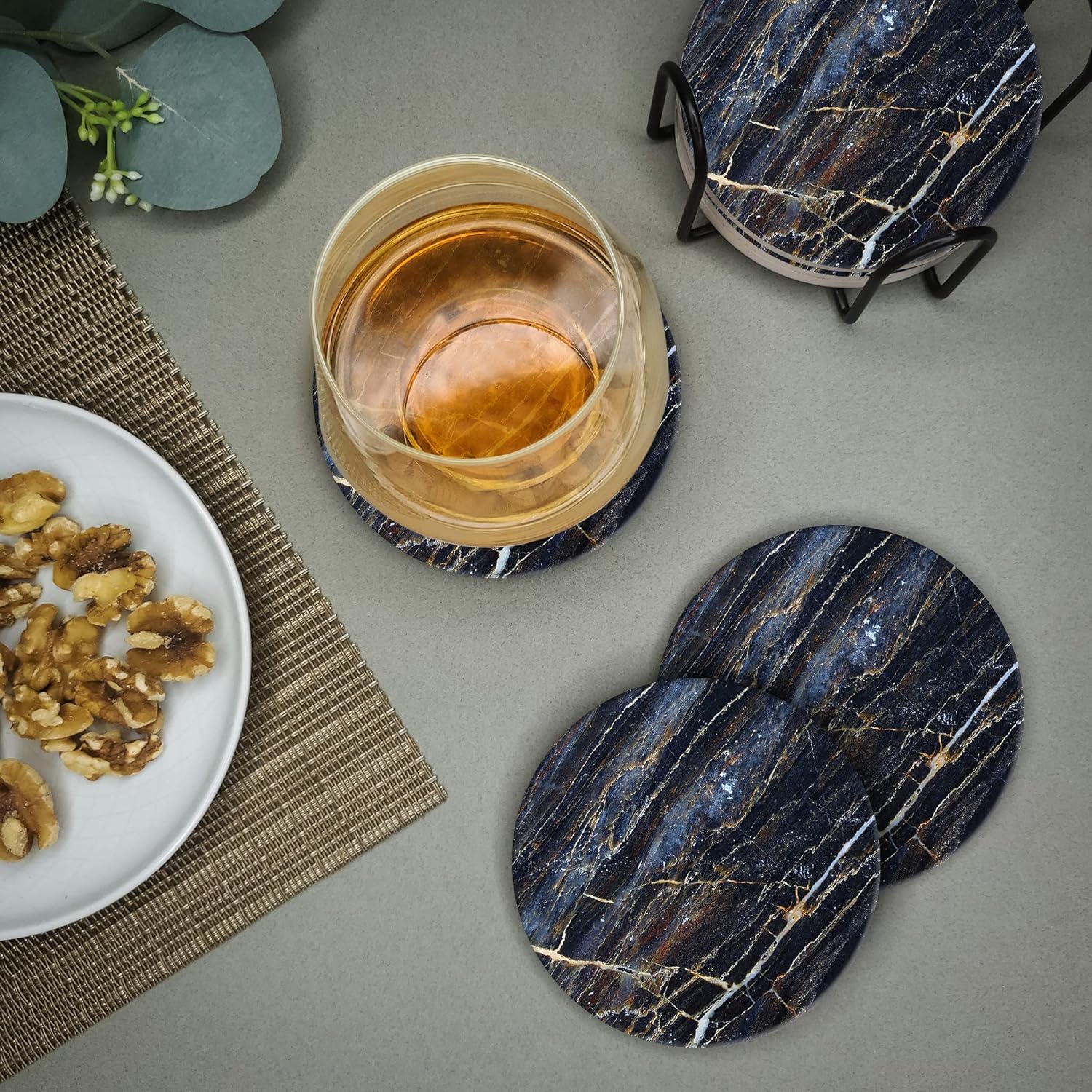 Emerson Coasters for Drinks Absorbent – Natural Stone Drink Coasters Set with Holder, Coasters for Coffee Table, Wooden Tabletop Protection Marble Style – 100% Heavy Duty Set of 6 (Thunder)