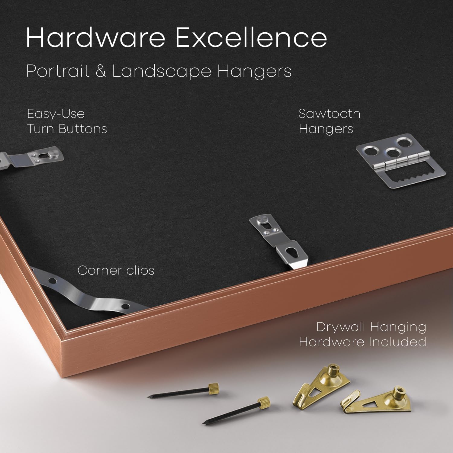 - ROSE GOLD. SOFT GLOW. This aluminum frame features a muted rose finish with a satin texture. It brings gentle contrast to light walls and softens modern interiors with a hint of warmth.