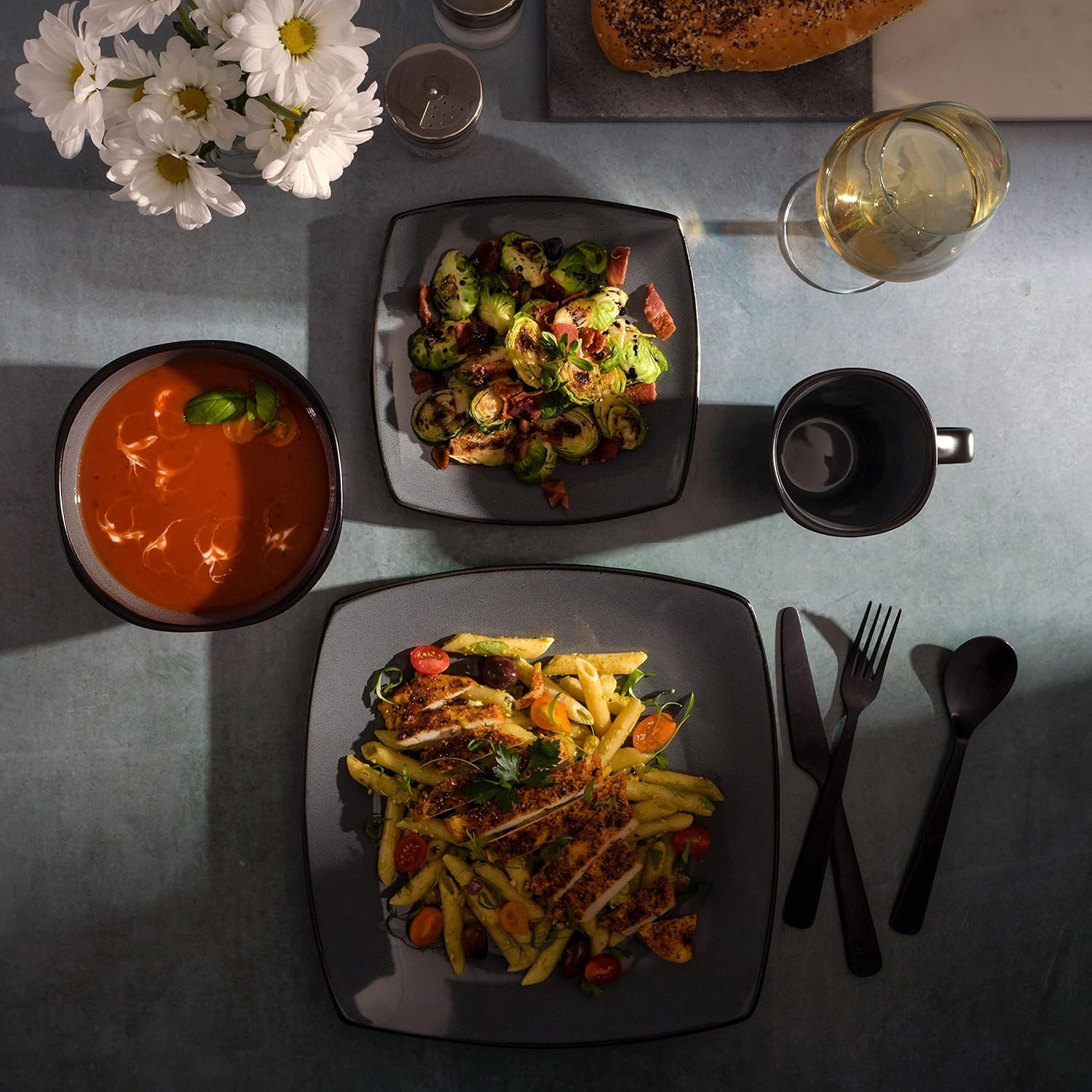 Gibson Elite Soho Lounge Square Reactive Glaze Stoneware Dinnerware Set, Service for 4 (16pc), Eclipse