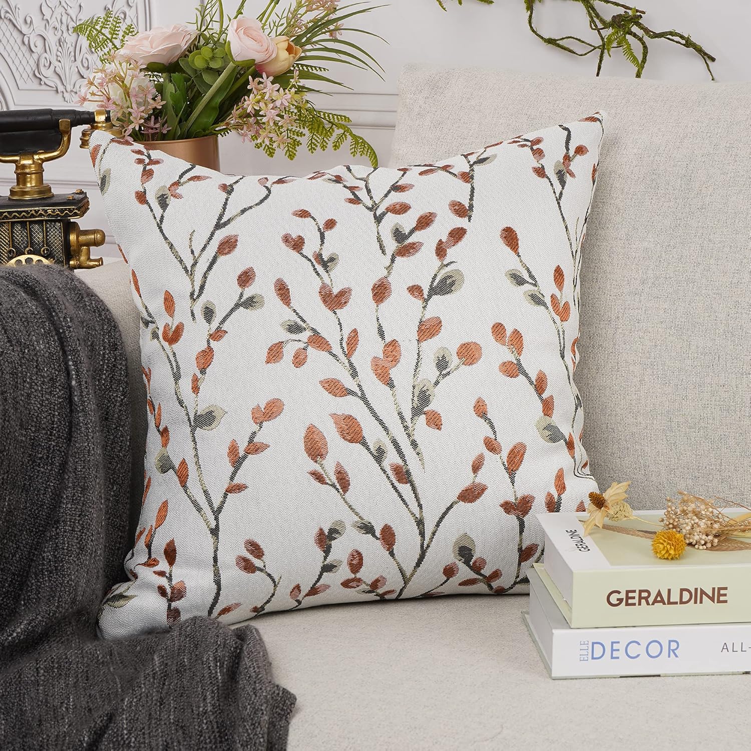 YOUR SMILE Classical Embroidery Jacquard Orange Square Decorative Throw Pillow Case Cushion Cover 18x18 inch