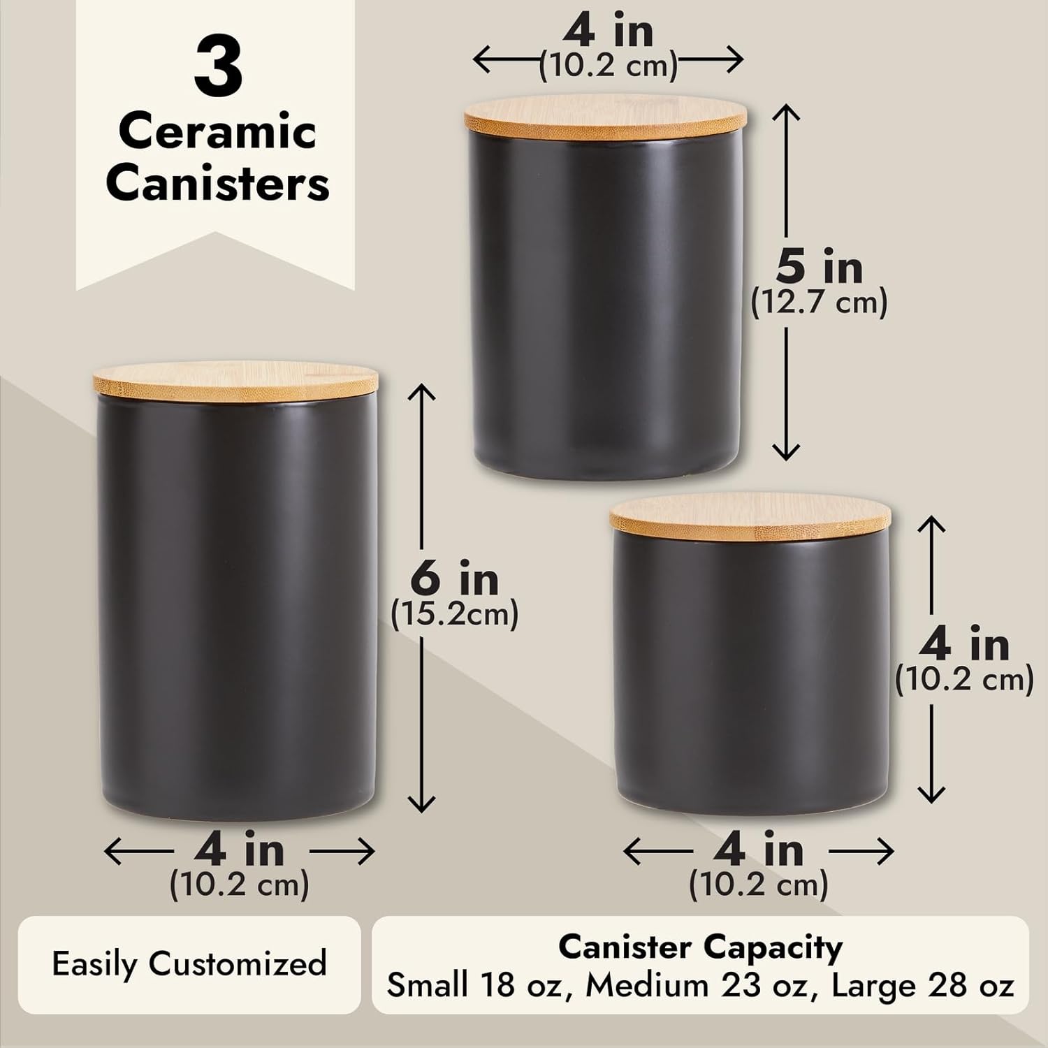 - Elegant Kitchen Jars: Enhance your kitchen with the Farmlyn Creek set of matte black ceramic jars, perfect for stylishly displaying on your kitchen counter or coffee bar. These ceramic containers with lids offer an attractive solution for sugar and coffee storage