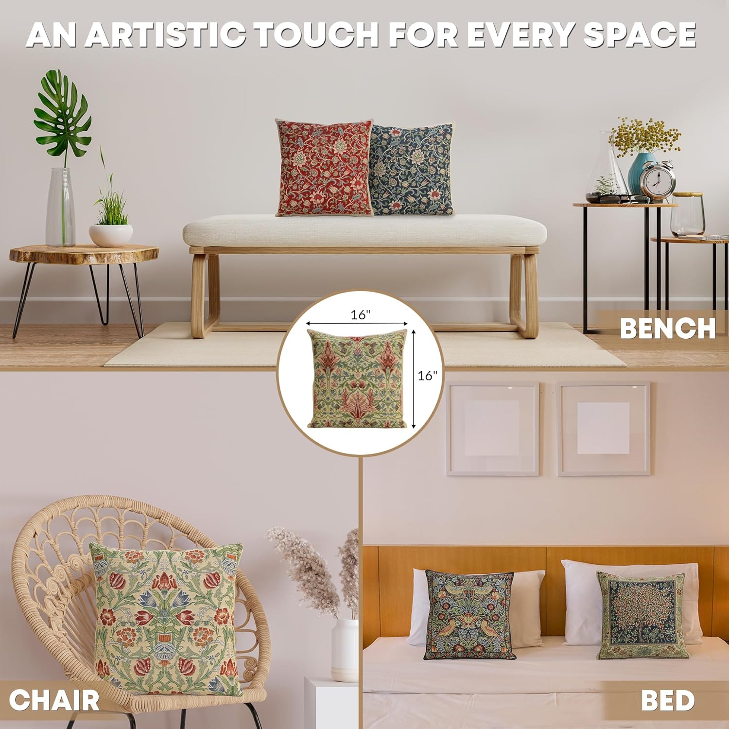 - Diverse Applications: Our couch pillow covers are inspired by the paintings of William Morris and are perfect for spaces including bedrooms, living rooms, and balconies. Create a charming aesthetic with our William Morris pillow covers, which adorn furniture such as a couch, chair, sofa, and window seat. Our pillows for couch blend with styles like boho, rustic, modern, and vintage. Surprise your loved ones on birthdays, weddings, or housewarming events by gifting them vibrant cushion covers