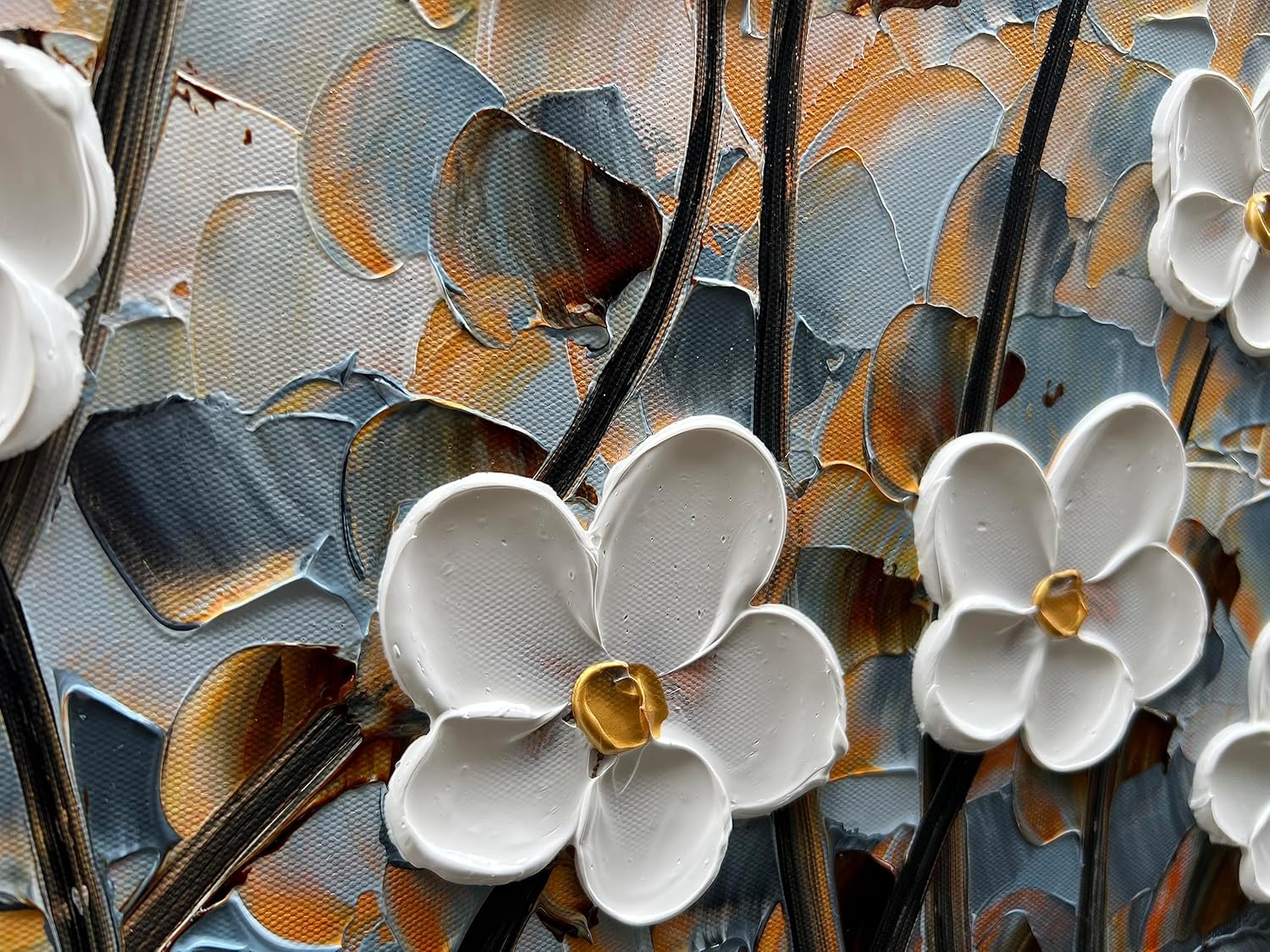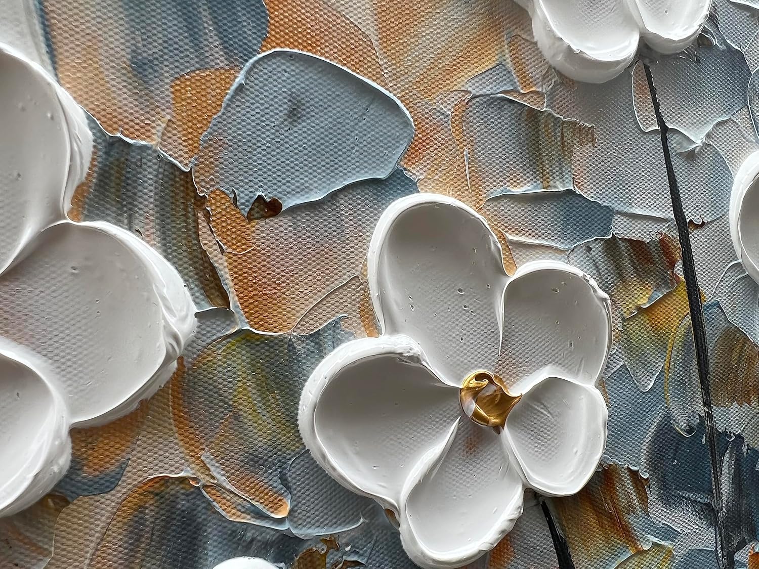 White Flower Canvas Wall Art Painting Hand-Painted Contemporary Art Works Living Room, Bedroom, Dining Room Wall Decoration 24x48 Inch