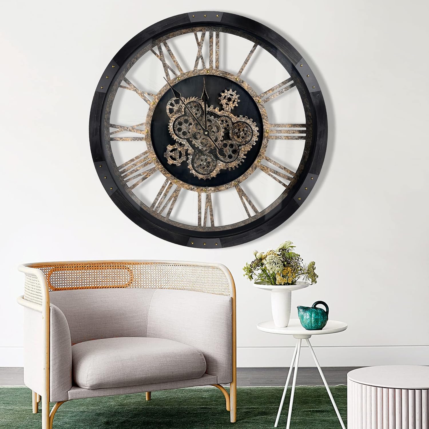 - Real Moving Gears Wall Clock: The big rustic wall clock is designed with multi-real moving gears, put battery in, various gears start working, makes a soft relaxing sound and makes a living element in the environment in where it is placed, vintage and magical, catch all eyes of visitors
