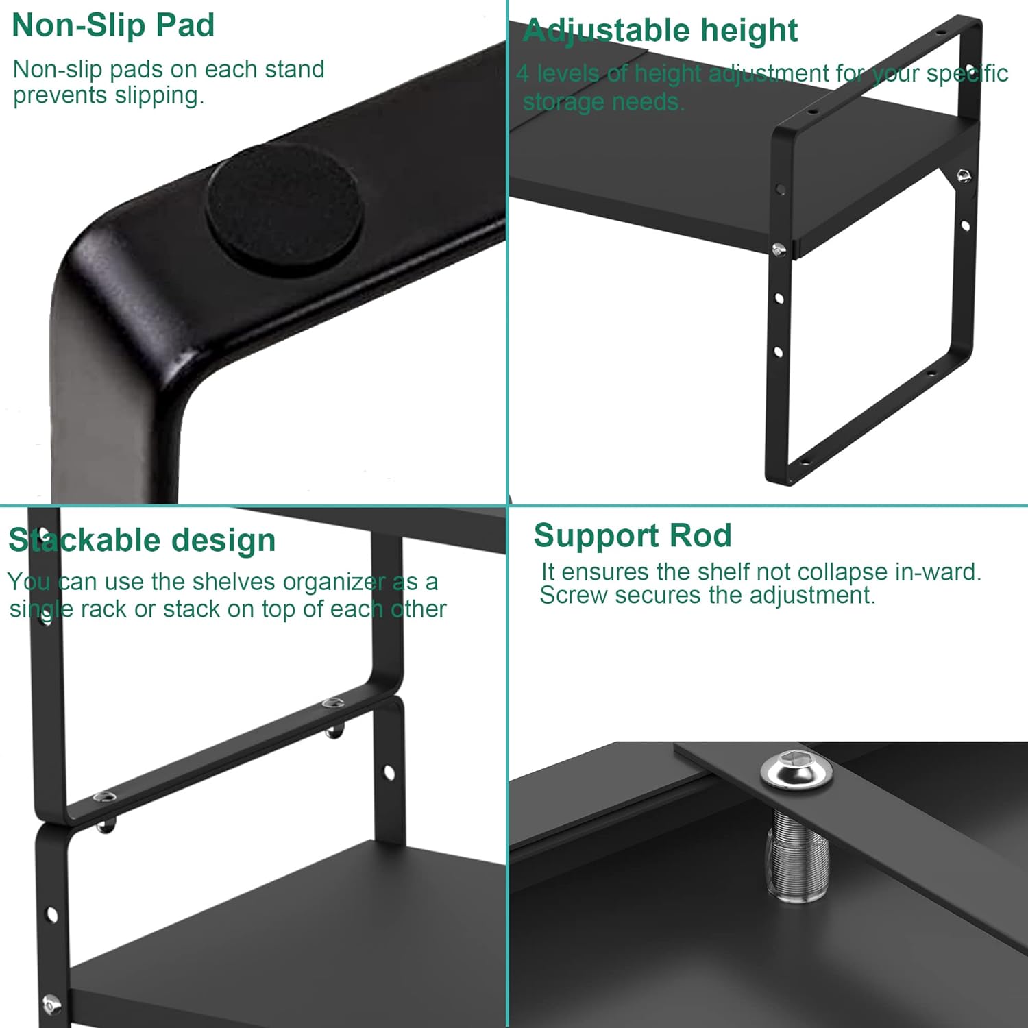 - 【Multifunctional storage】--This shelf will double your space! It can be used in various places in your home, including kitchen cabinets, desks, pantry, bathroom cabinets, closets, countertops, under the sink or any place that needs extra space to maximize storage and organization.