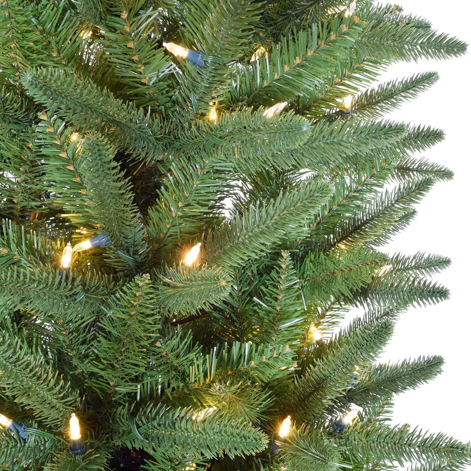 - Prelit with Easy Connect Technology and Long Lasting LED Lights: Pre-strung with 750 warm white 8-function LED lights to bring a festive glow to your home; Instant one-click connection makes assembly a snap; No wires, no hassle, one plug for the entire tree
