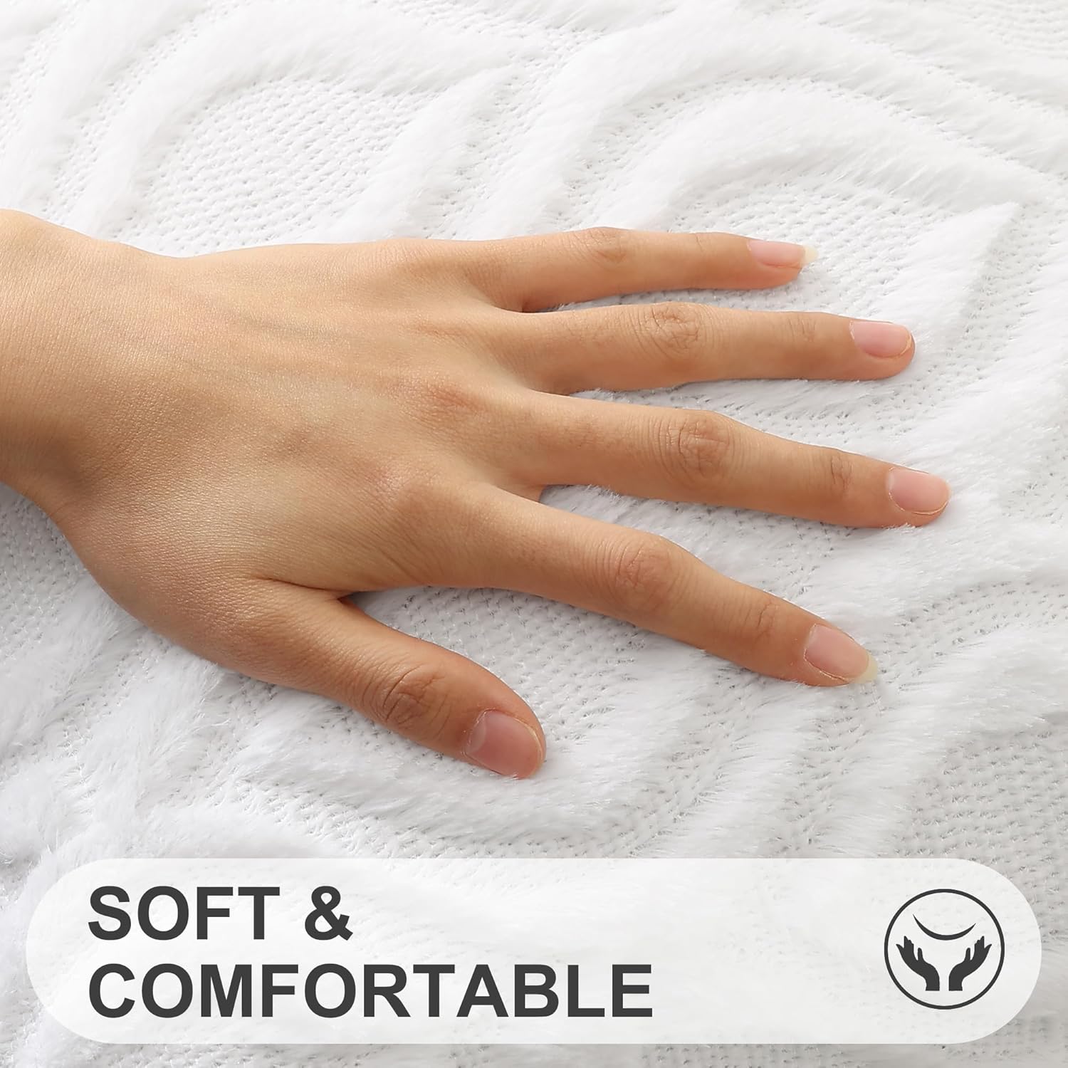 decorUhome Fall Throw Pillow Covers 16x16 Inch Set of 2, Soft Plush Decorative Faux Fur White Solid Couch Pillow Covers, Accent Farmhouse Neutral Square Euro Pillow Cases for Sofa Bed Living Room