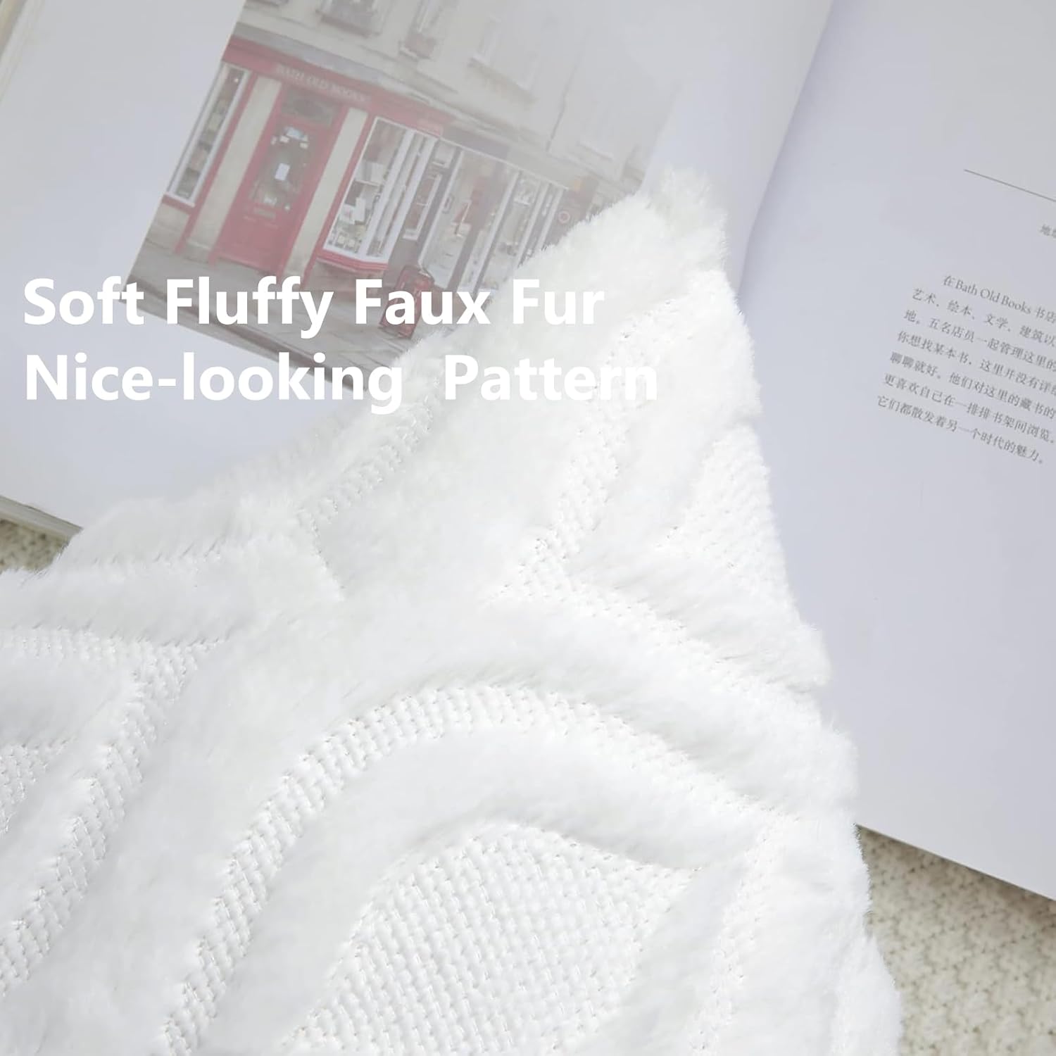 decorUhome Fall Throw Pillow Covers 26x26 Inch Set of 2, Soft Plush Decorative Faux Fur White Solid Couch Pillow Covers, Accent Farmhouse Neutral Square Euro Pillow Cases for Sofa Bed Living Room