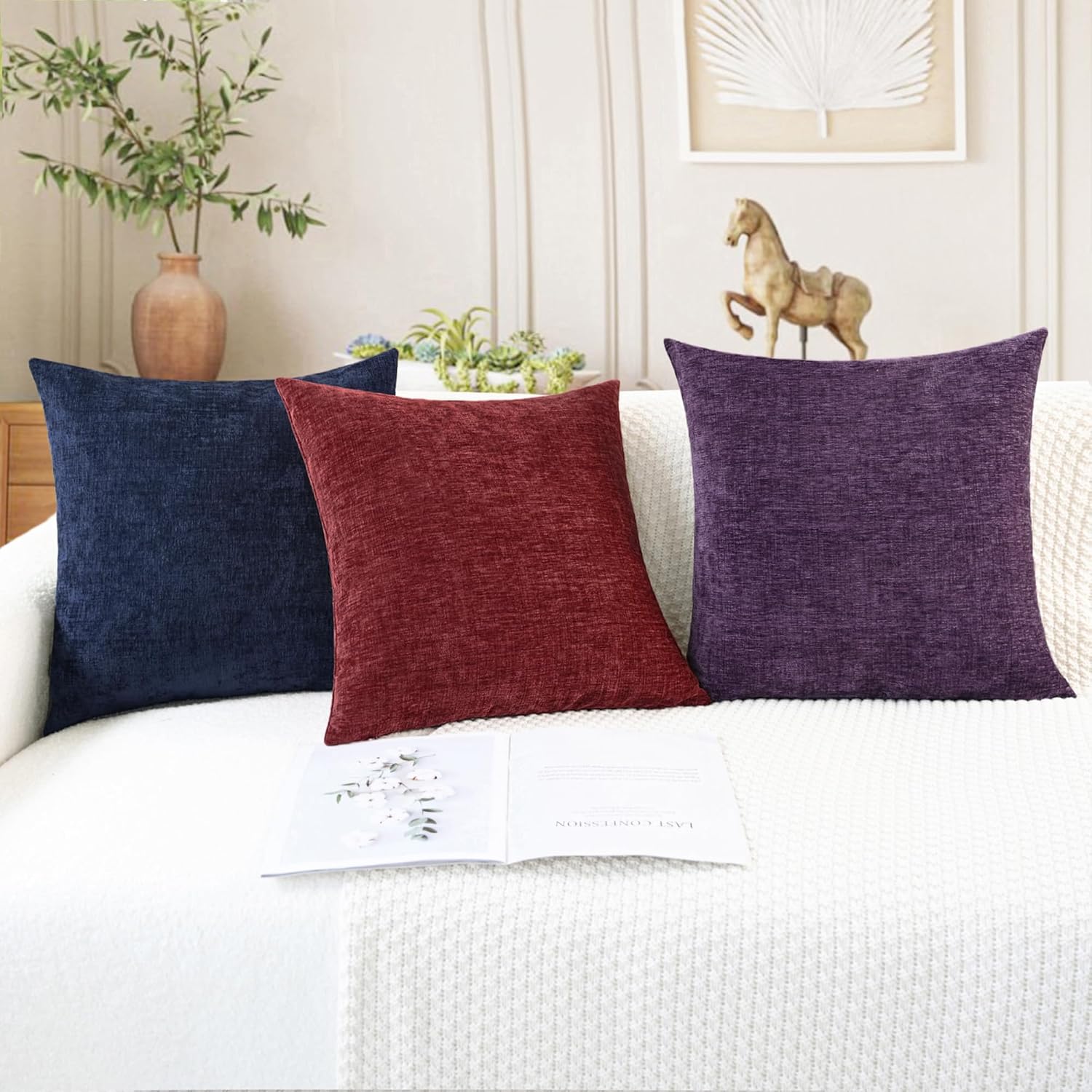 CaliTime Throw Pillow Covers Decorative 26 X 26 Inches Pack of 2 Cozy Chenille Cushion Cases for Couch Sofa Bed Living Room Home Navy Blue