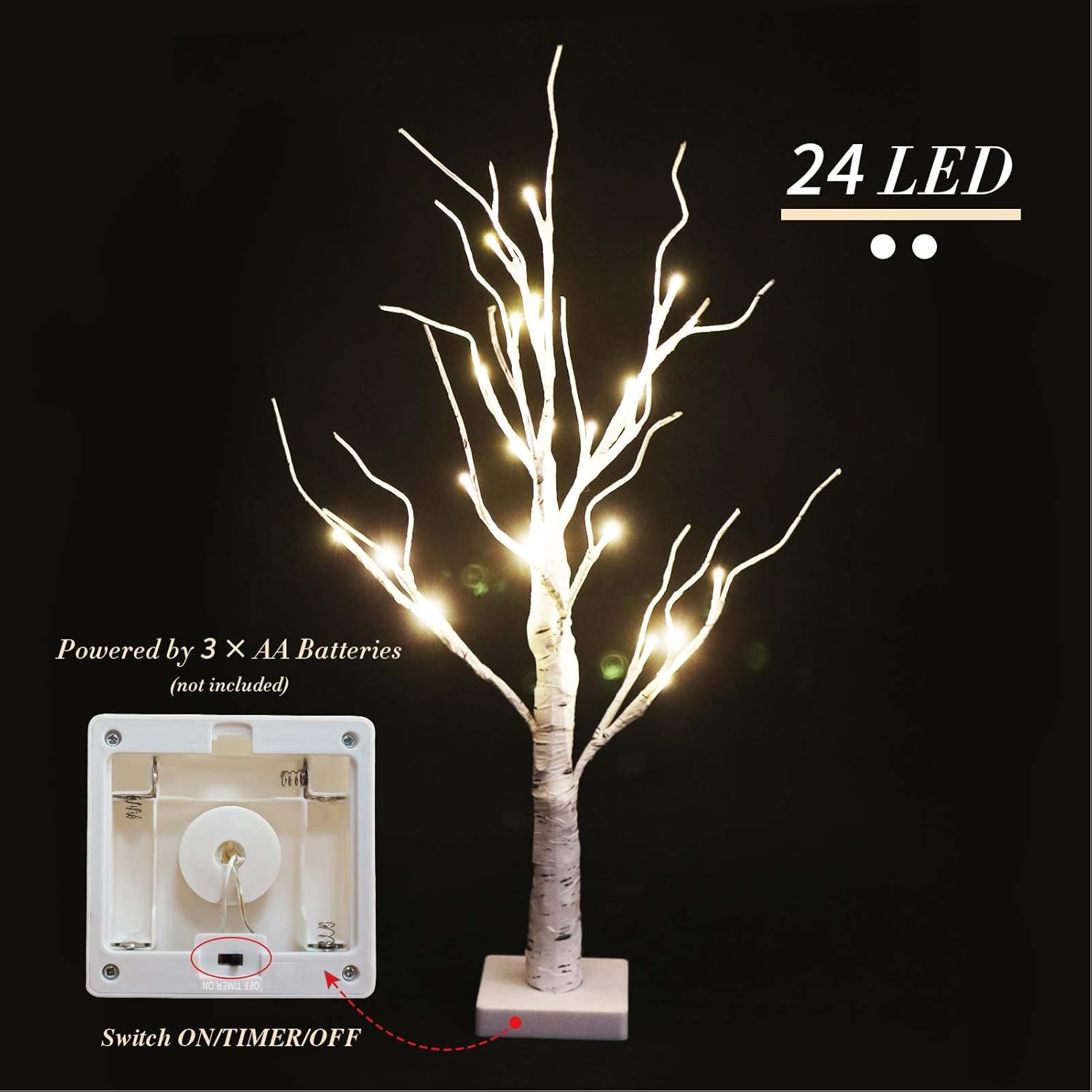 - Size: Overall height 2FT(60cm) with a 3.94"x 3.94" solid base,contains 24 independent warm white LED lights, easily to create a cosy atmosphere