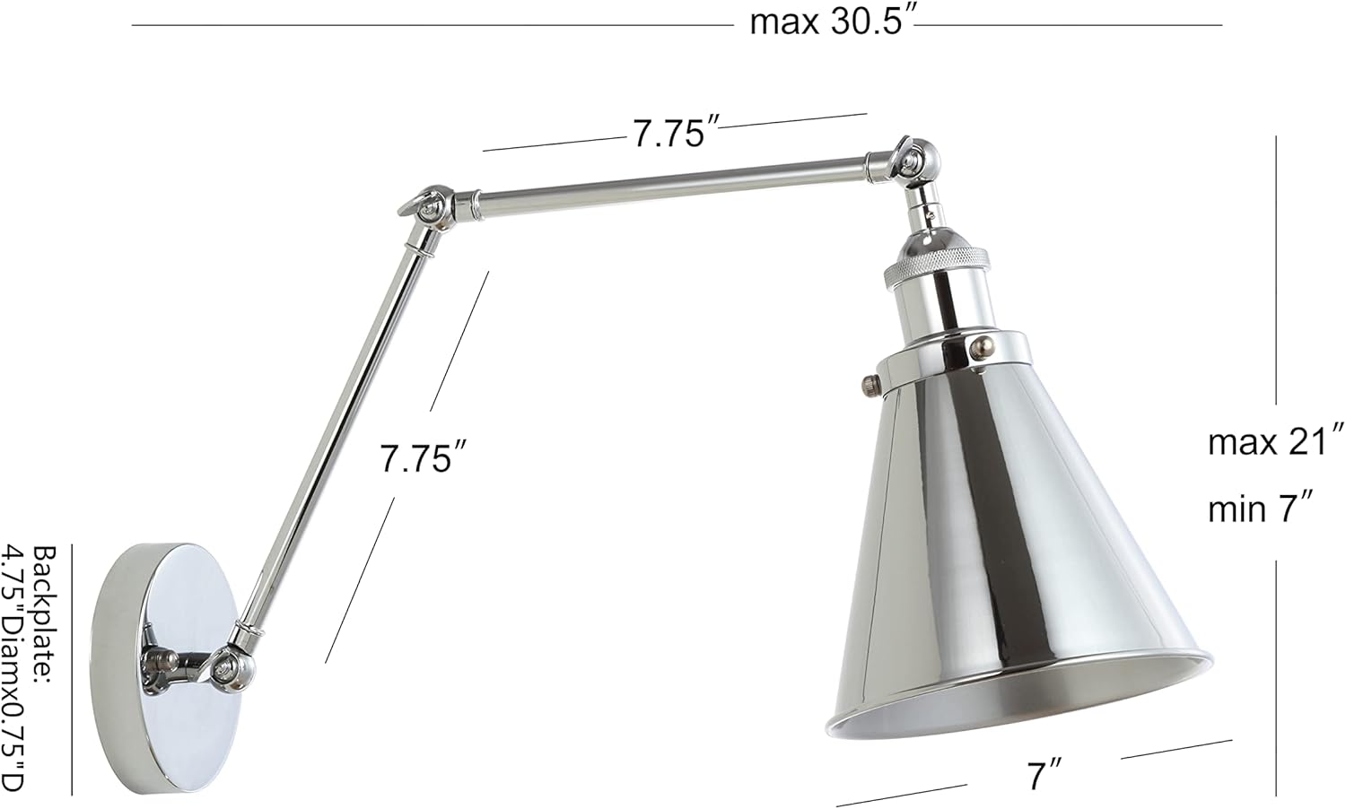 JONATHAN Y JYL7460A-SET2 Rover 7" Farmhouse Industrial Adjustable Arm Metal LED Wall Sconce Rustic Bohemian 2700K LED 4W Bulb for Entryway Lobby Kitchen Bathroom Bedroom Hallway, Chrome (Set of 2)