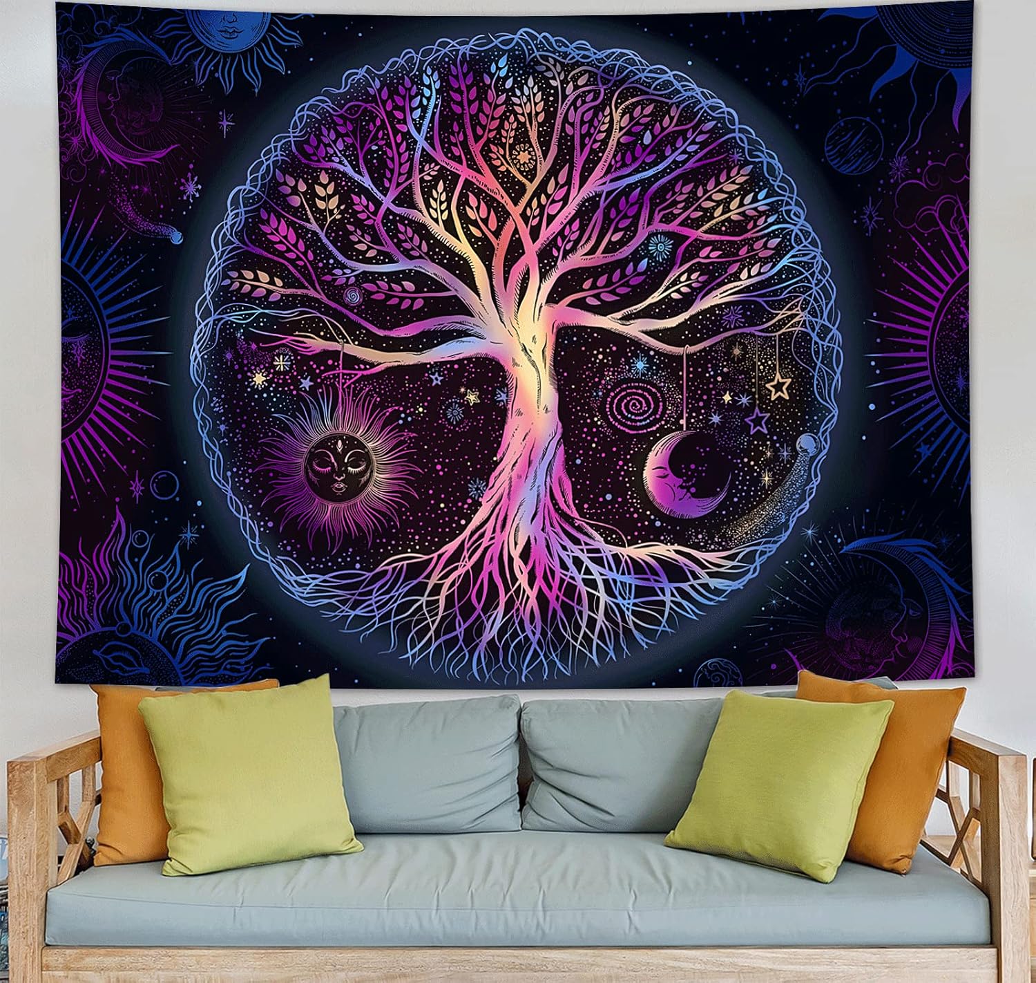 FORATER Tree of Life Tapestry Wall Hanging Colorful Life Tree Tapestries Aesthetic Sun and Moon Galaxy Wall Tapestry for Bedroom Living Room Dorm (61 x 82 Inch, Multicolor)
