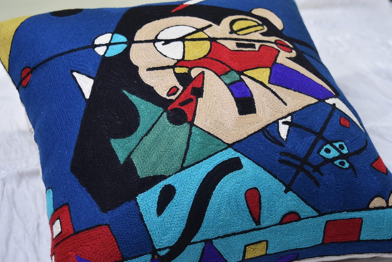 Kandinsky Modern Pillow Cover - Blue Harmony | Abstract, Contemporary, Mid Century Chair Cushion | Handmade Wool Size 18x18