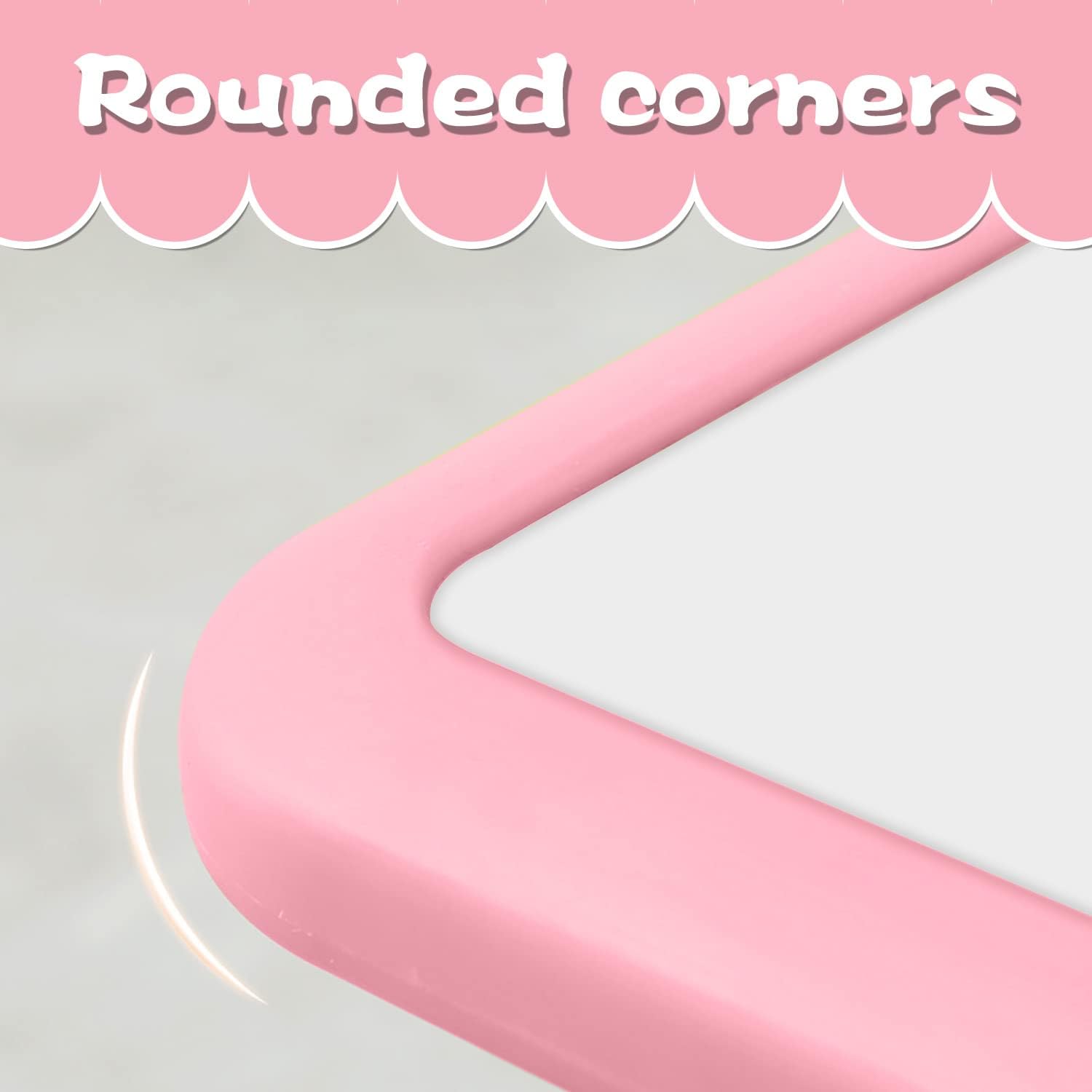 Children's Table and Chair Set Suitable for Boys and Girls Age 2-12 Height Adjustable Table top Can be Painted with 6 Seats Suitable for Family Learning Daily use (Pink)