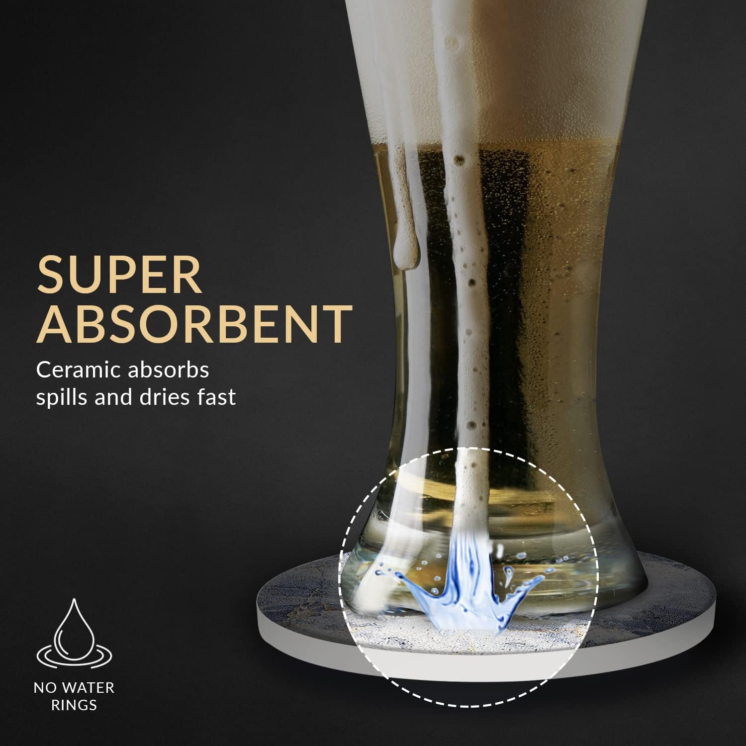 - ✅ LARGE SIZE – Our special material ceramic makes the coasters great for drinking beverage glasses, cups and mugs. Giftable idea for family, friends, women and men. Our wide selection includes black, grey, white, gold, brown, funny, mid century pattern, geometric, geode, rustic, minimalist and industrial style. Protects surfaces and absorbs faster than sandstone, soapstone, tile, cork, silicone, quartz, porcelain or marble.