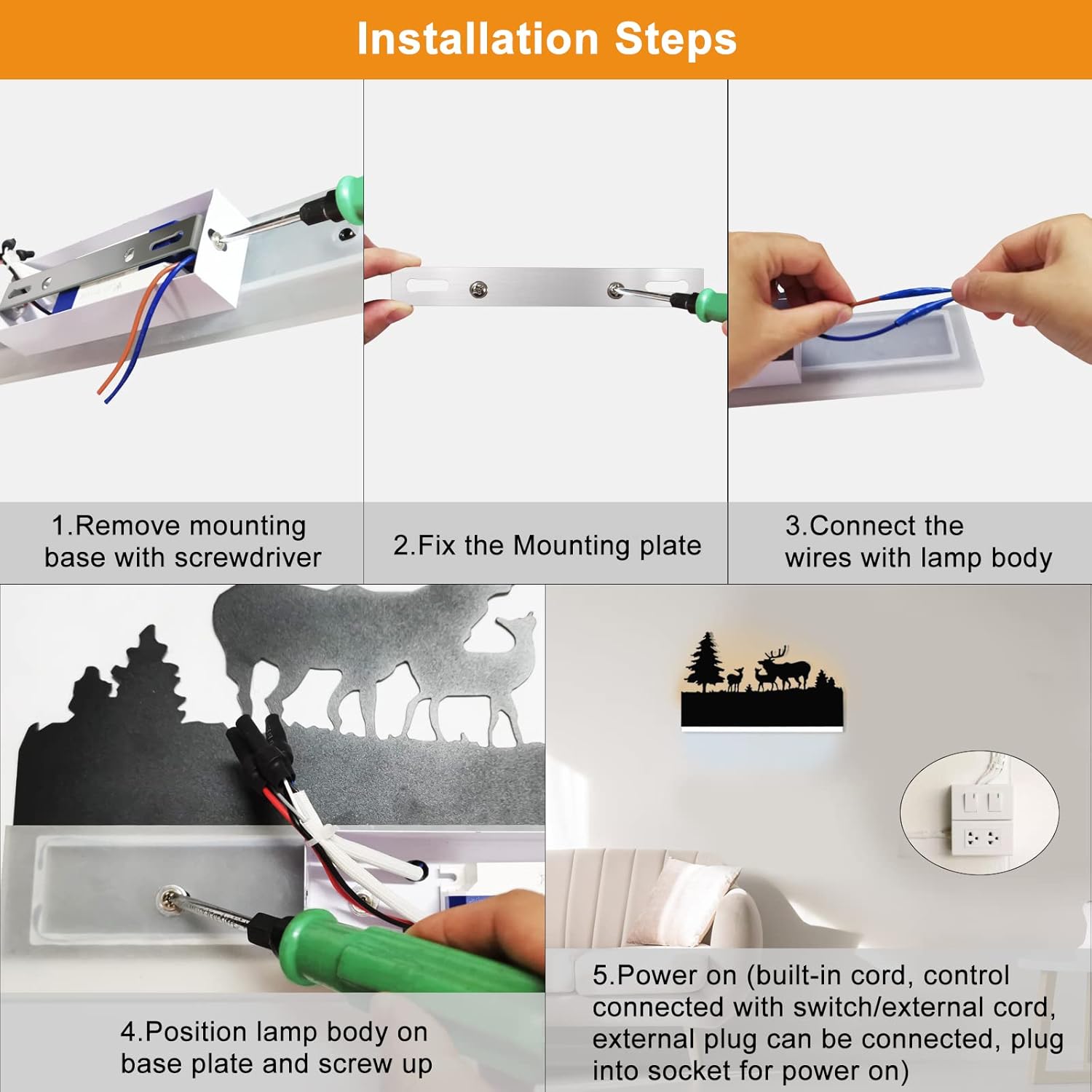 - 【High quality material】 This wall lamp is made of high quality iron and acrylic lampshade with high light transmission, laser engraved in cartoon animal motifs and anti-rust treatment. It is not just a lamp, but also a painting.