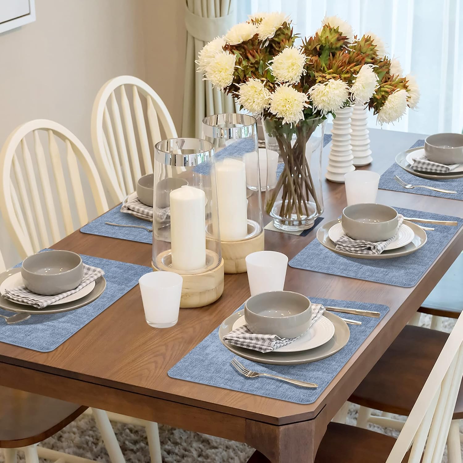 - EASY CARE: Designed for ease of use, these durable table mats withstand any spills and stains, making clean-up a breeze. Just with a simple wipe with a rag or a rinse under the tap, they'll be spotless and ready for your next meal