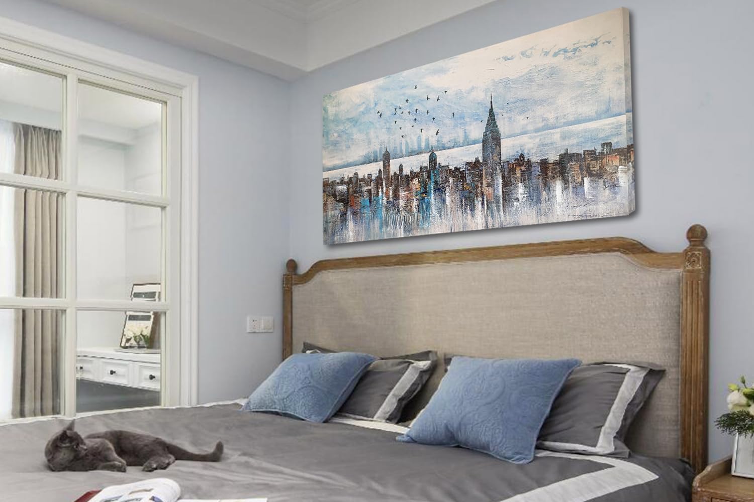 - Cityscape wall art size: 40inx20in(100x50cm) gallery wrapped, it's our original design with hand-painted textured. The vibrant colors and intricate details of this piece will bring a sense of tranquility and peace to any room