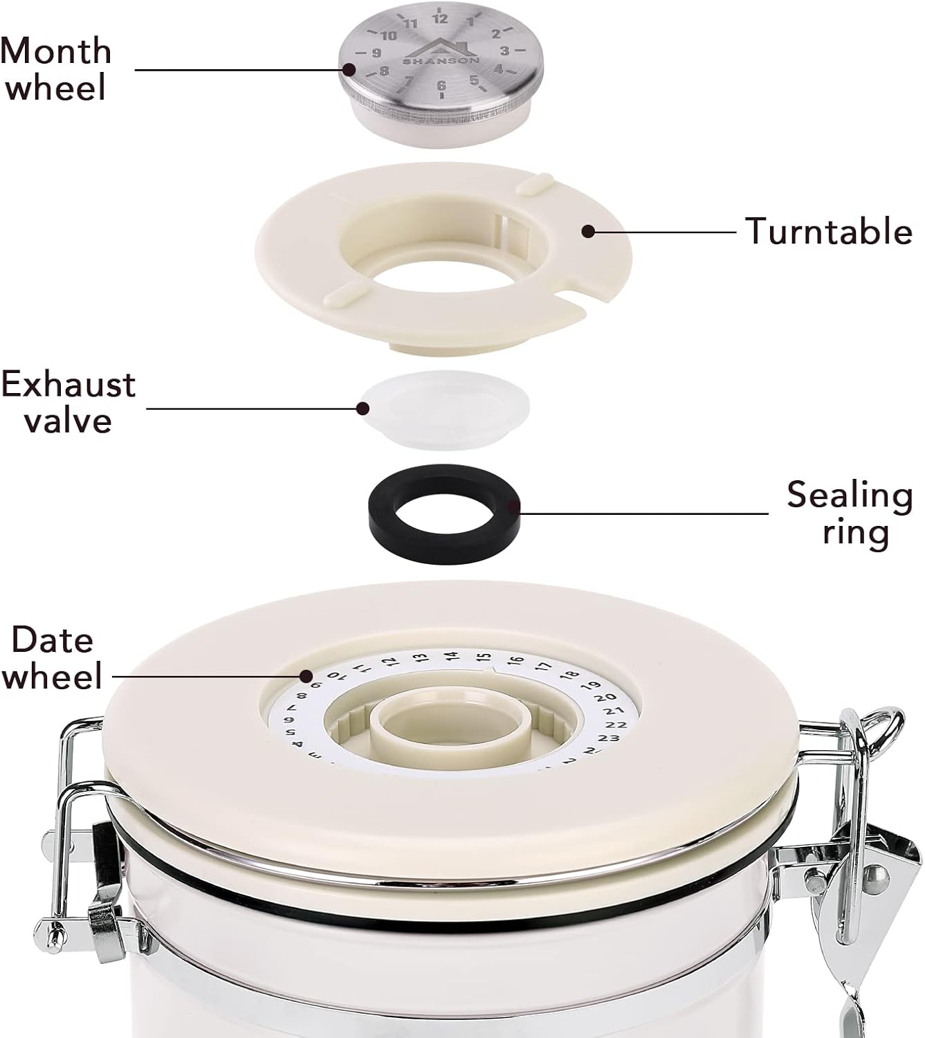 ShanSon Coffee Canister Airtight Coffee Container Stainless Steel Coffee Bean Storage Container with CO2 Release Valve and Scoop Coffee Canister for Beans,Grounds,Sugar,Flour,Tea,Cereal,16OZ,Off-White