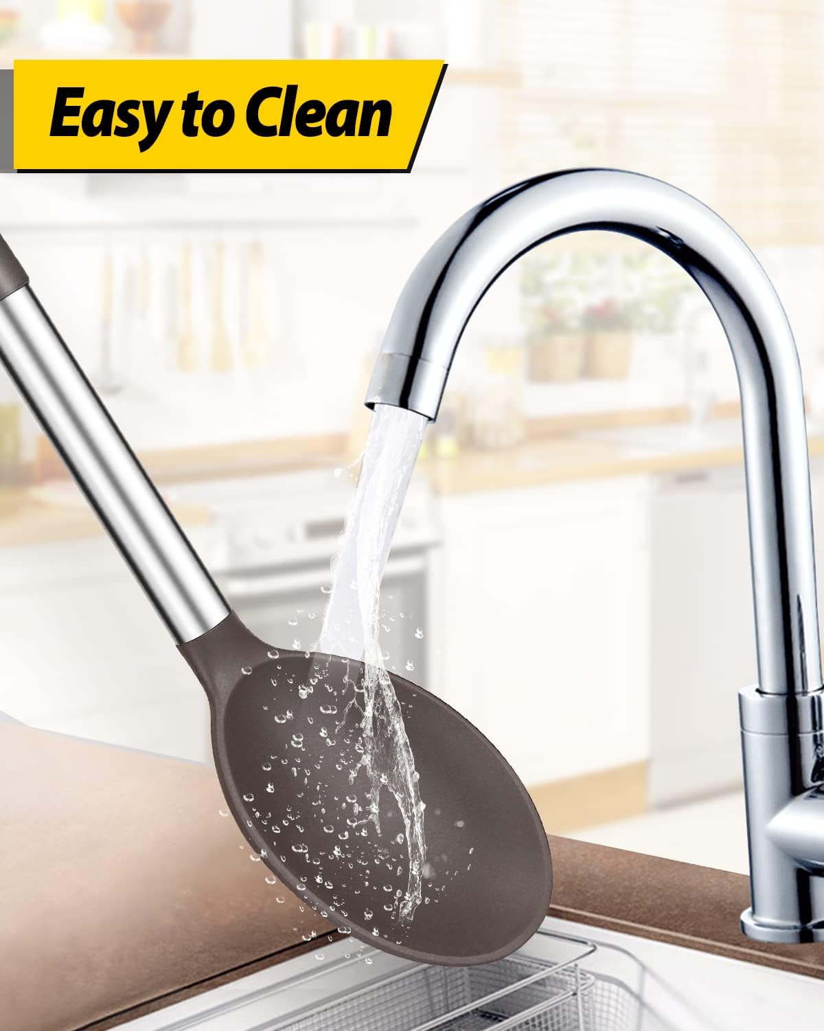 - More Safe and Healthy : Our silicone spoons are made of food-grade silicone, free of BPA;Even at high temperatures, there is no need to worry about melting or deforming;And the soft silicone head won't scratch the coating, it can better protect your pot