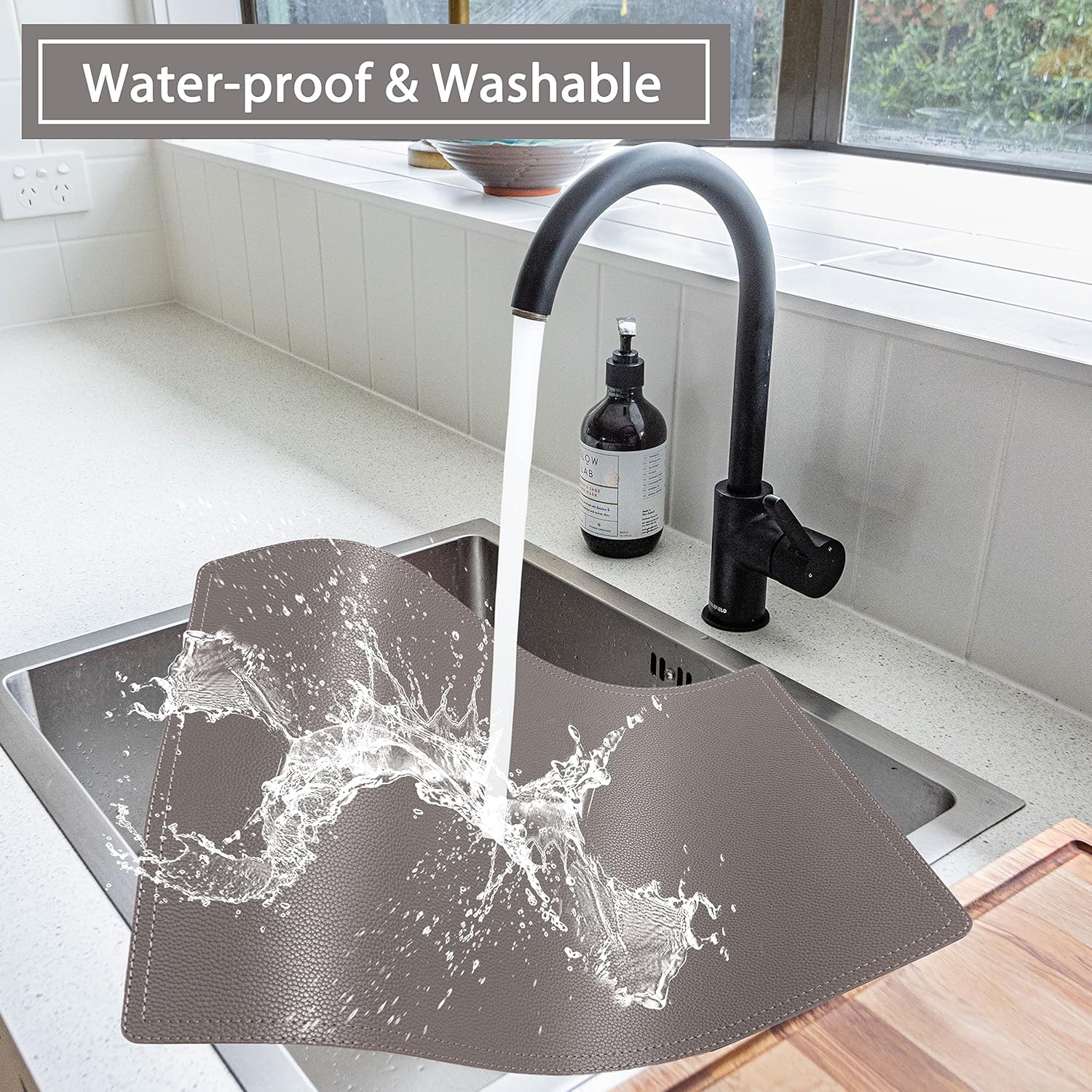 Set of 4 Faux Leather Placemats, PU Table Mats, Waterproof, Stain Resistant, Heat Resistant, Non-Slip Easy to Clean for Kitchen Dining Table,Conference Table C Grey Rectangle