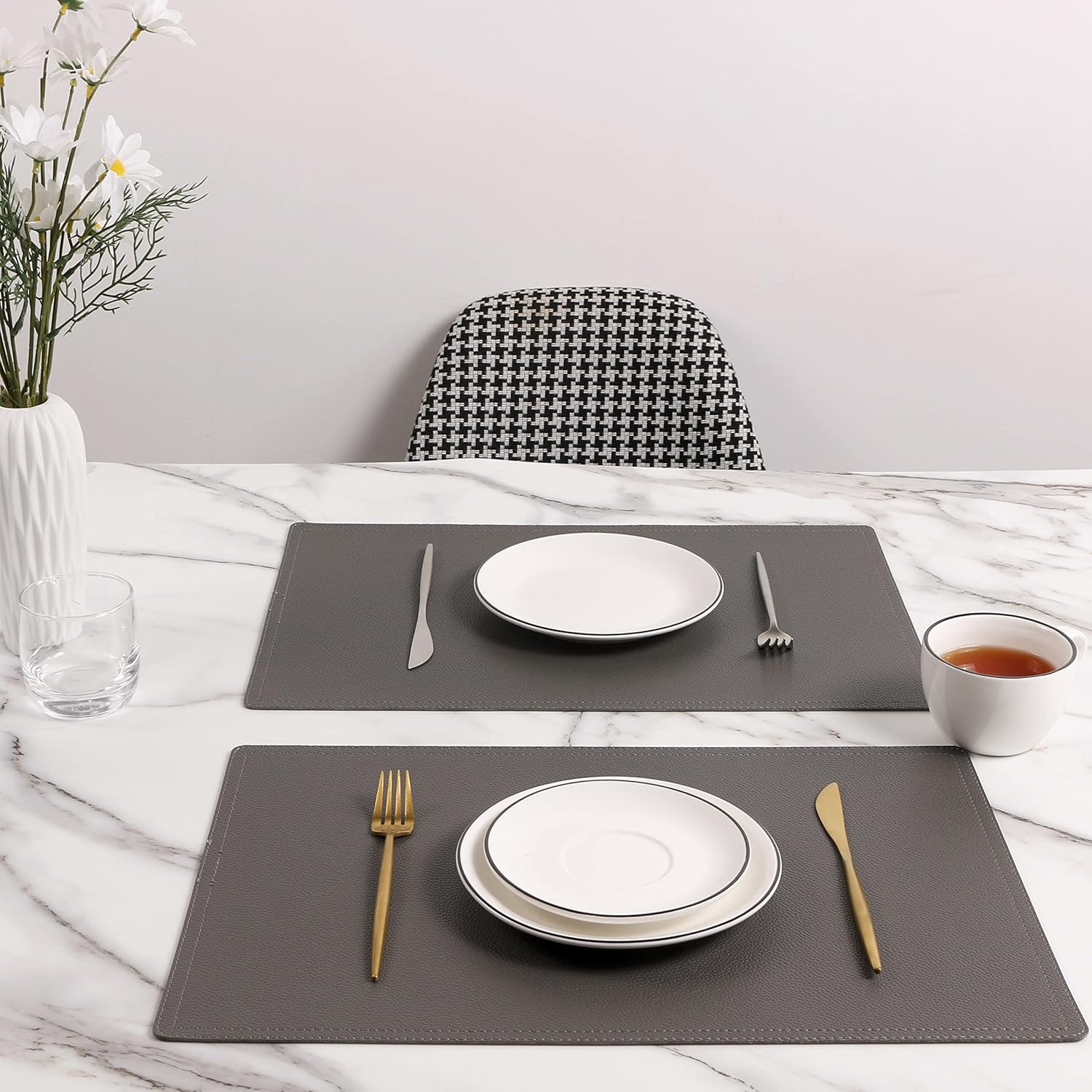 Set of 6 Faux Leather Placemats, PU Table Mats, Waterproof, Stain Resistant, Heat Resistant, Non-Slip Easy to Clean for Kitchen Dining Table,Conference Table C Grey Rectangle