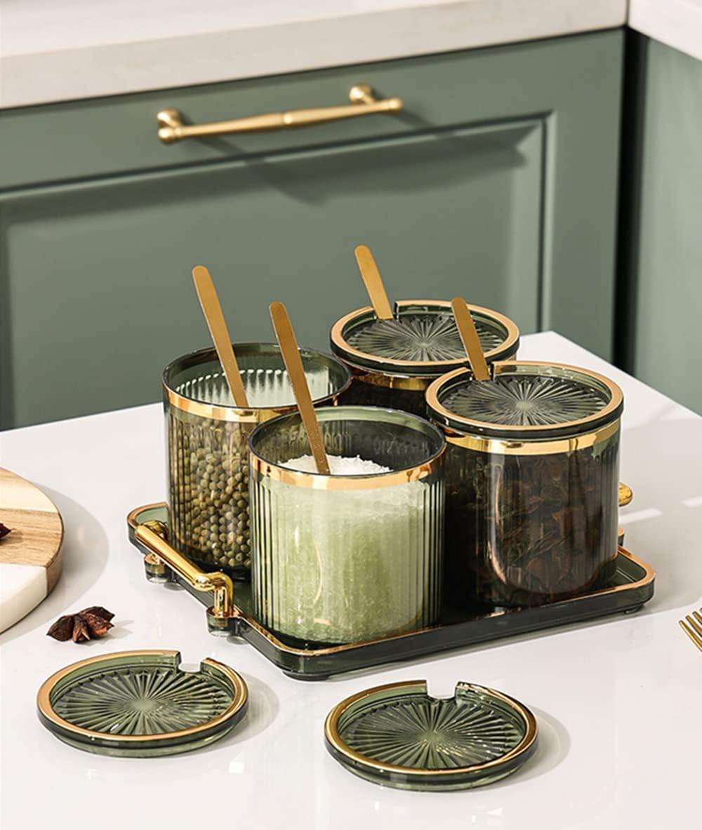 - ▲▲【Material】: Transparent thickened acrylic condiment container, made of PP plastic, equipped with 4 metal spoons and a practical tray with a handle, sturdy and corrosion-resistant, it can be effectively stored while decorating home life, adding color
