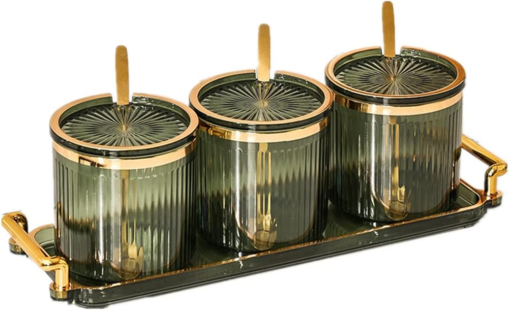 - ▲▲【Material】: Transparent thickened acrylic condiment container, made of PP plastic, equipped with 3 metal spoons and a practical tray with a handle, sturdy and corrosion-resistant, it can be effectively stored while decorating home life, adding color