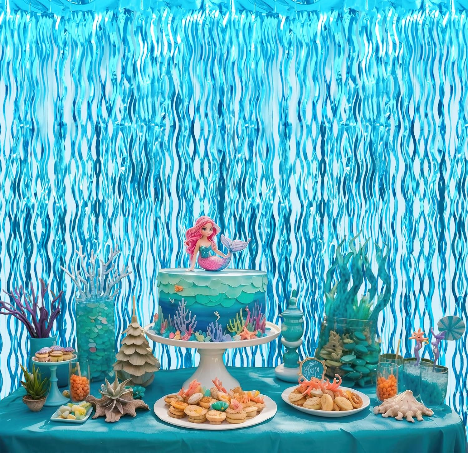 - Package Includes:1 pack wavy light blue foil fringe curtain,3.2 ft x 6.5 ft each,suitable for hanging on a door or coverage a wall fully