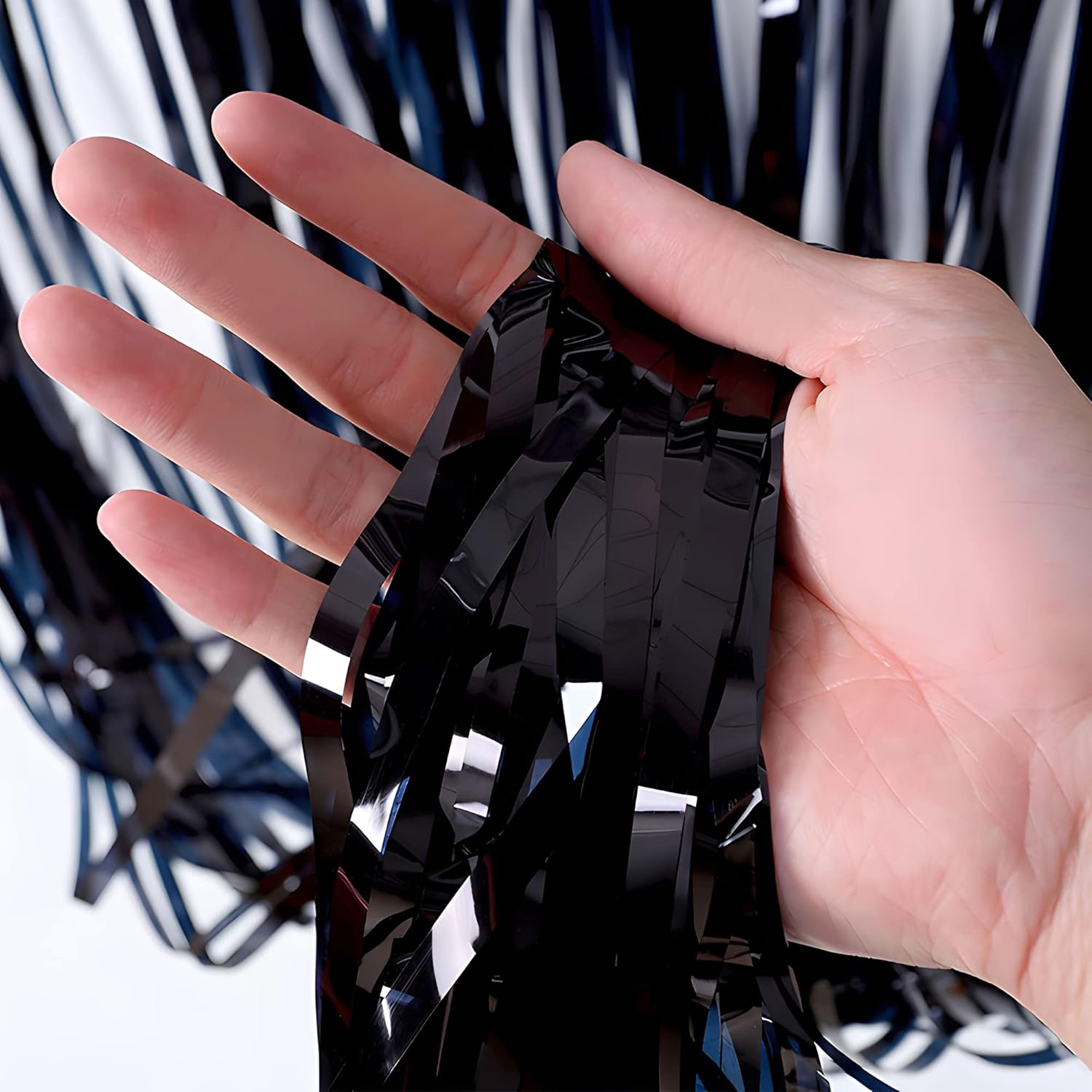 Black Tinsel Backdrop Curtain - GREATRIL Tinsel Curtain Party Backdrop Streamers for Wizard Birthdays/Stranger Theme/Doorway/Halloween Decorations Party - 2 Packs