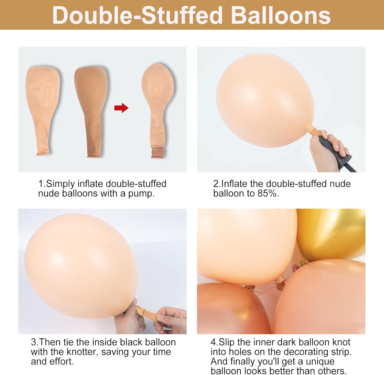 - DIY Pink Balloon Garland: Simply inflate double-stuffed nude balloons with a balloon inflator, slip the inner dark balloon knot into holes on the decorating strip and then you'll get a unique balloon looks better than others; We advise inflate blush pink balloons to random sizes; You can make full use of your creativity to combine dusty rose blush balloons of different colors and sizes and connect with glue points and balloon arch strip to achieve amazing effect you want in a complete shape