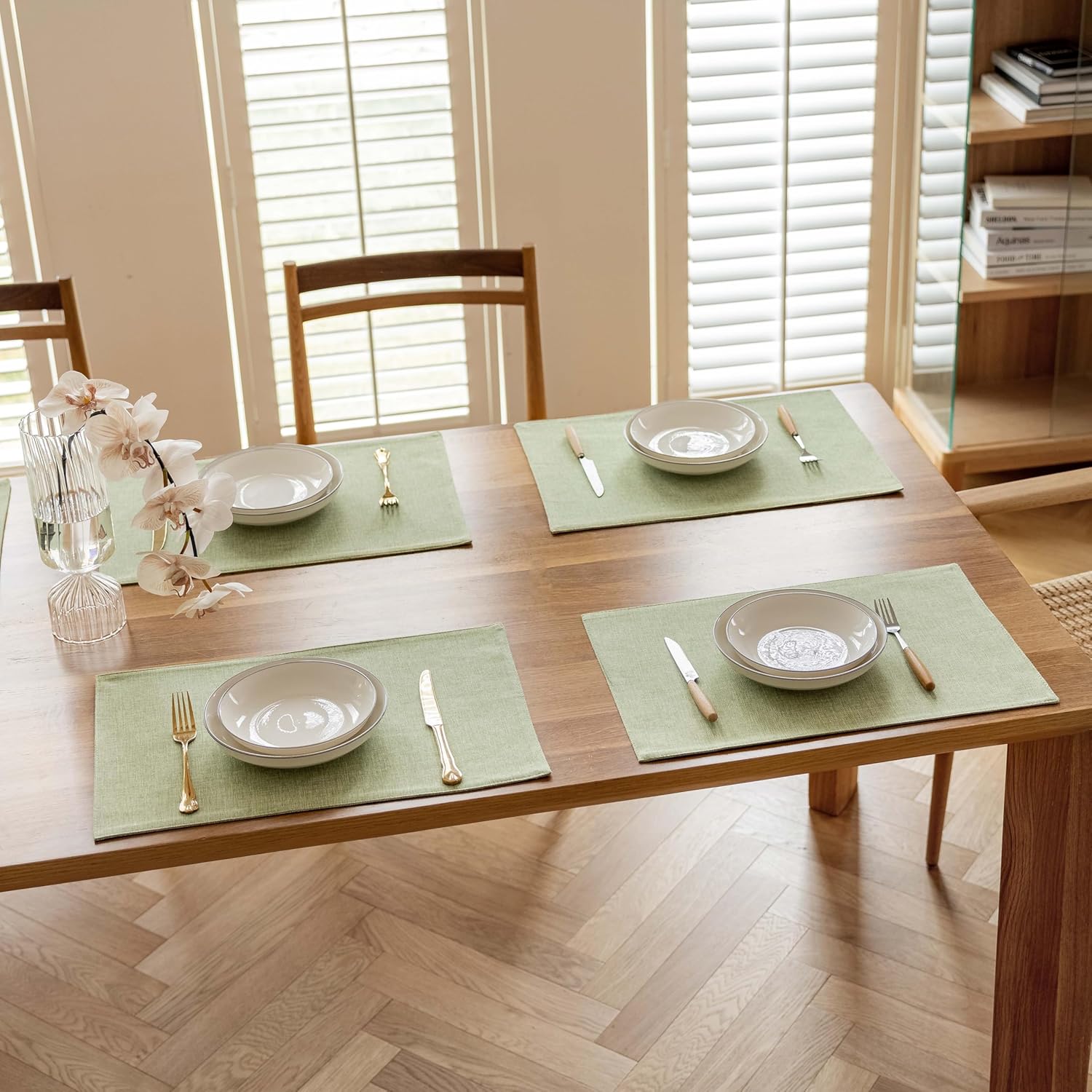 Demetex Green Placemat Set of 4 Washable Linen Place Mats for Dinner Heat Resistant Sage Cloth Placemats Scratch Resistant Plate Mats for Dining Table Kitchen, Green