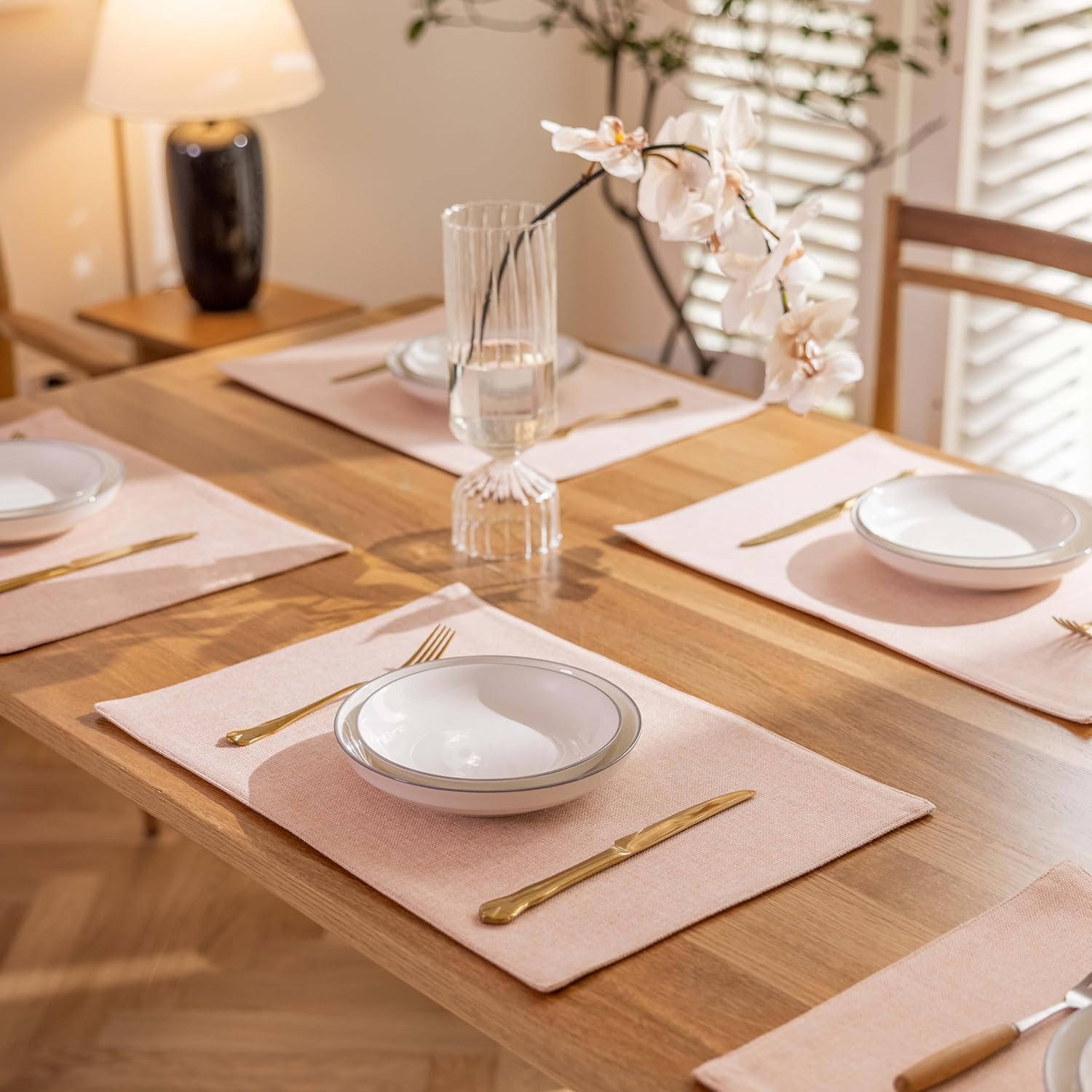Demetex Pink Placemats Set of 4 Heat Resistant Linen Plate Mats Wipeable Cloth Place Mats for Dining Tables Restaurants, 13 x 19 inches, Pink