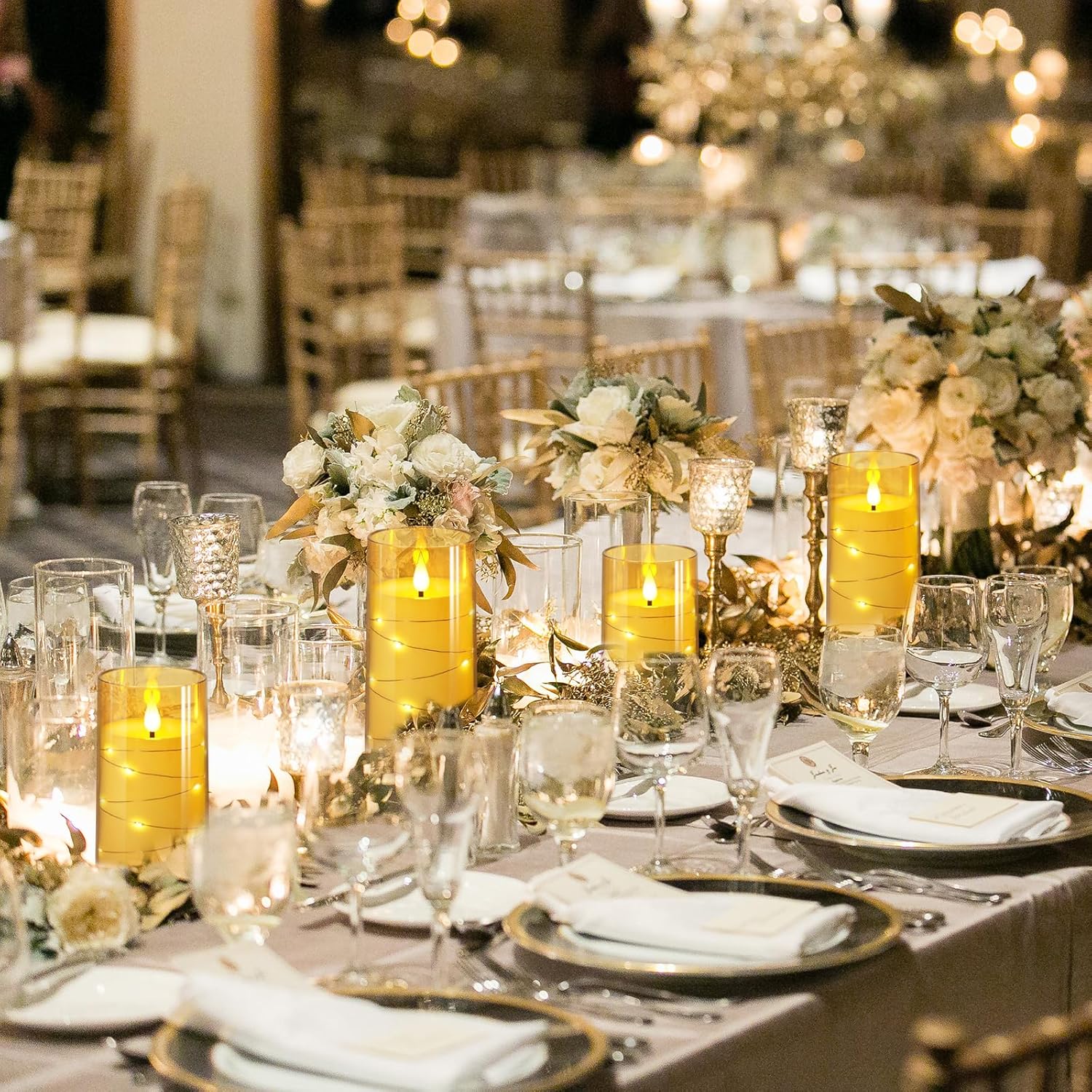 - 【Creative Embedded Starlight String Technology】Silver metal wire strung 16 warm little stars, winding around the middle flameless candle, this unique designed acrylic shell makes the LED pillar candle light shine softer and not dazzling. While the candle bright, the string of 12 to 16 LEDs are also lit. Placed on your bedside or dinner table, the extreme warm and romantic candlelight and starlight are full of classical and noble atmosphere, real and beauty.