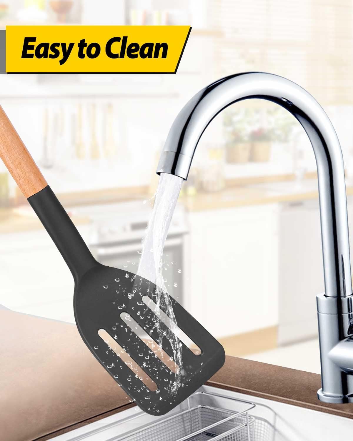 - Thoughtful Design : Wooden handle keeps you away from the trouble of kitchen utensils rusting or breaking; This anti-scald wood handle is not easy to conduct heat and is more comfortable to hold than traditional utensils