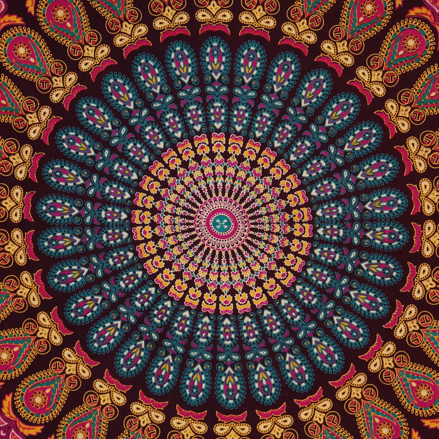 Bless International Handmade Indian hippie Bohemian Psychedelic Peacock Mandala Wall hanging College Dorm Beach Throws Table Cloth Bedding Tapestry (Golden Pink Blue, Queen(84x90Inches)(215x230Cms))