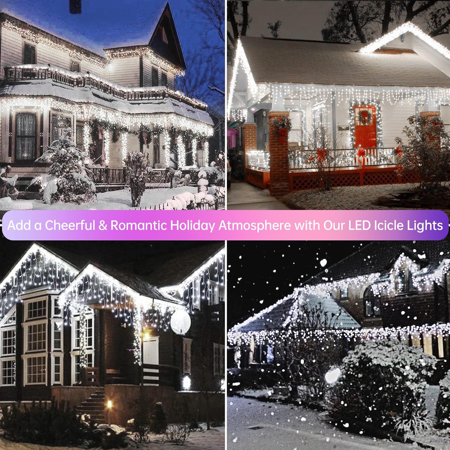 - 【8 Lighting Modes & Remote Control】 The Christmas decorations outside lights have 8 different light patterns, which is perfect for creating a festive atmosphere: Combination, In Waves, Sequential, Slo Glo, Chasing/Flash, Slow Fade, Twinkle/Flash, Steady On. You can adjust the hanging lights using the included remote easily without being in the cold to reset the pattern which you want.