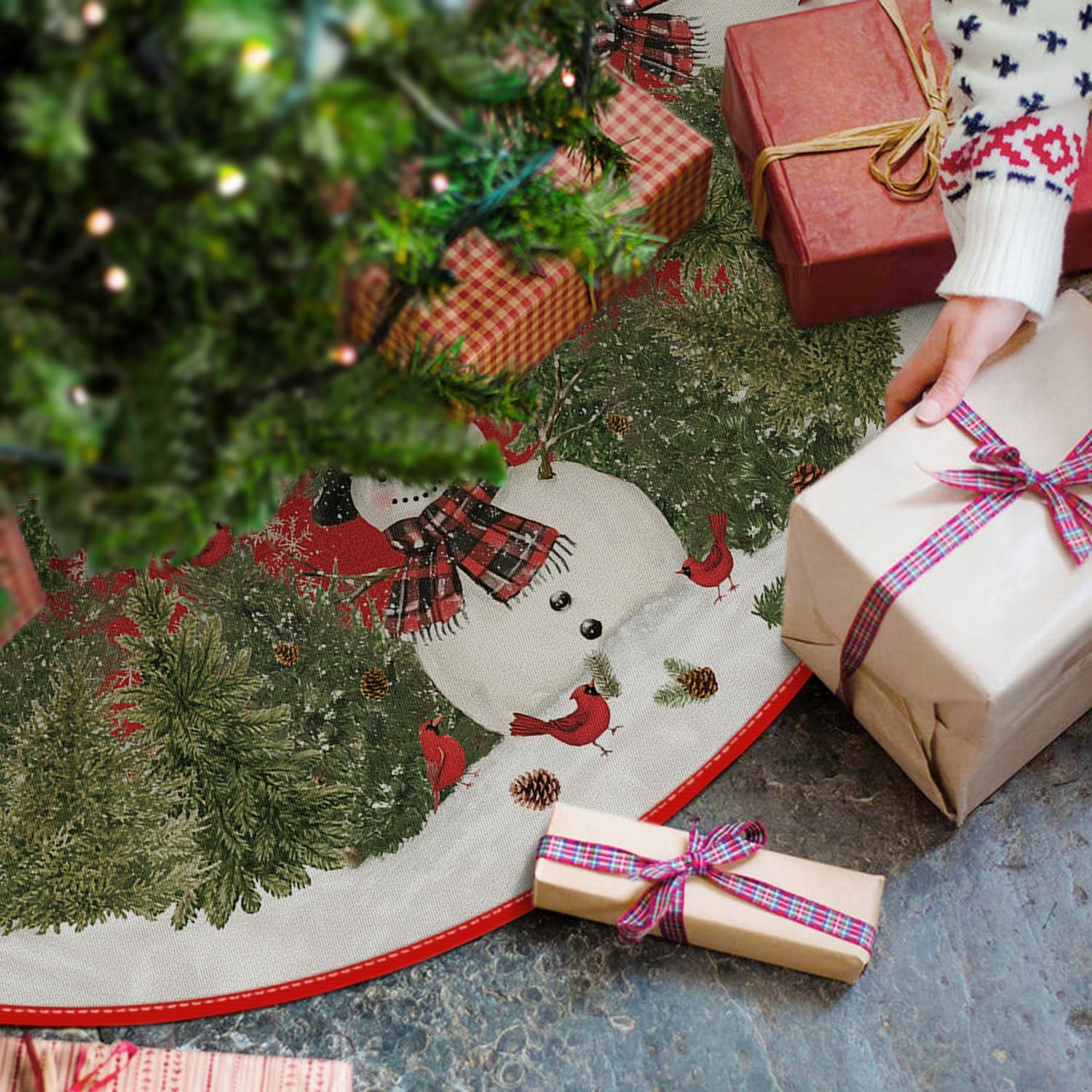 AVOIN colorlife Cardinals Cedar Snowman with Scarf Christmas Tree Skirt, Xmas Winter Holiday Party Tree Mat Indoor Outdoor Decoration 48 Inch