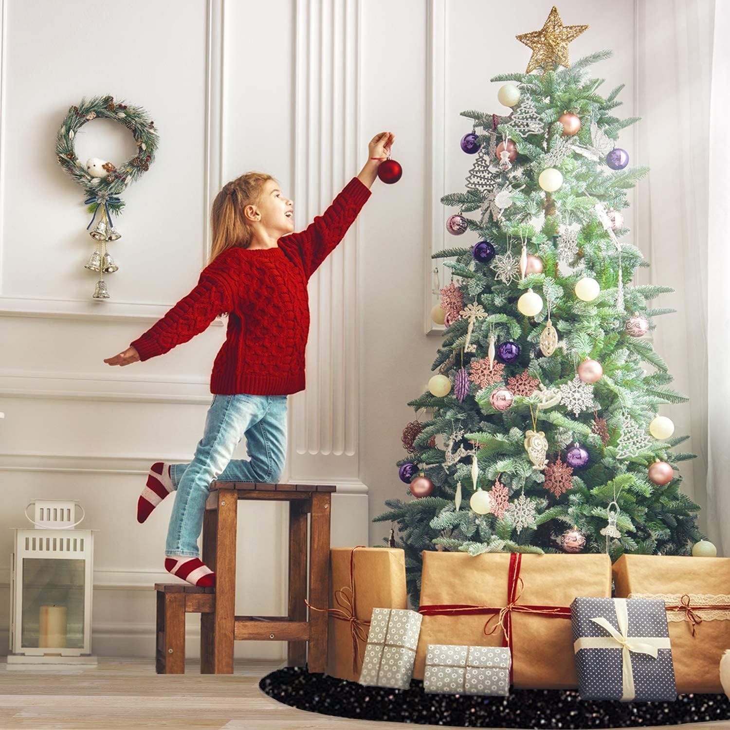 - âď¸ăSize Detail - 36 Inch Halloween Tree MatăYou will receive a 36 inches diameter black glitter sequins tree skirt, fits under 6 foot tall trees. You can put some gifts, Christmas boxes, Christmas ball on the xmas tree cover mat. The sparkle velour Christmas tree skirts is perfect for decorating your home and become part of your holiday tradition.