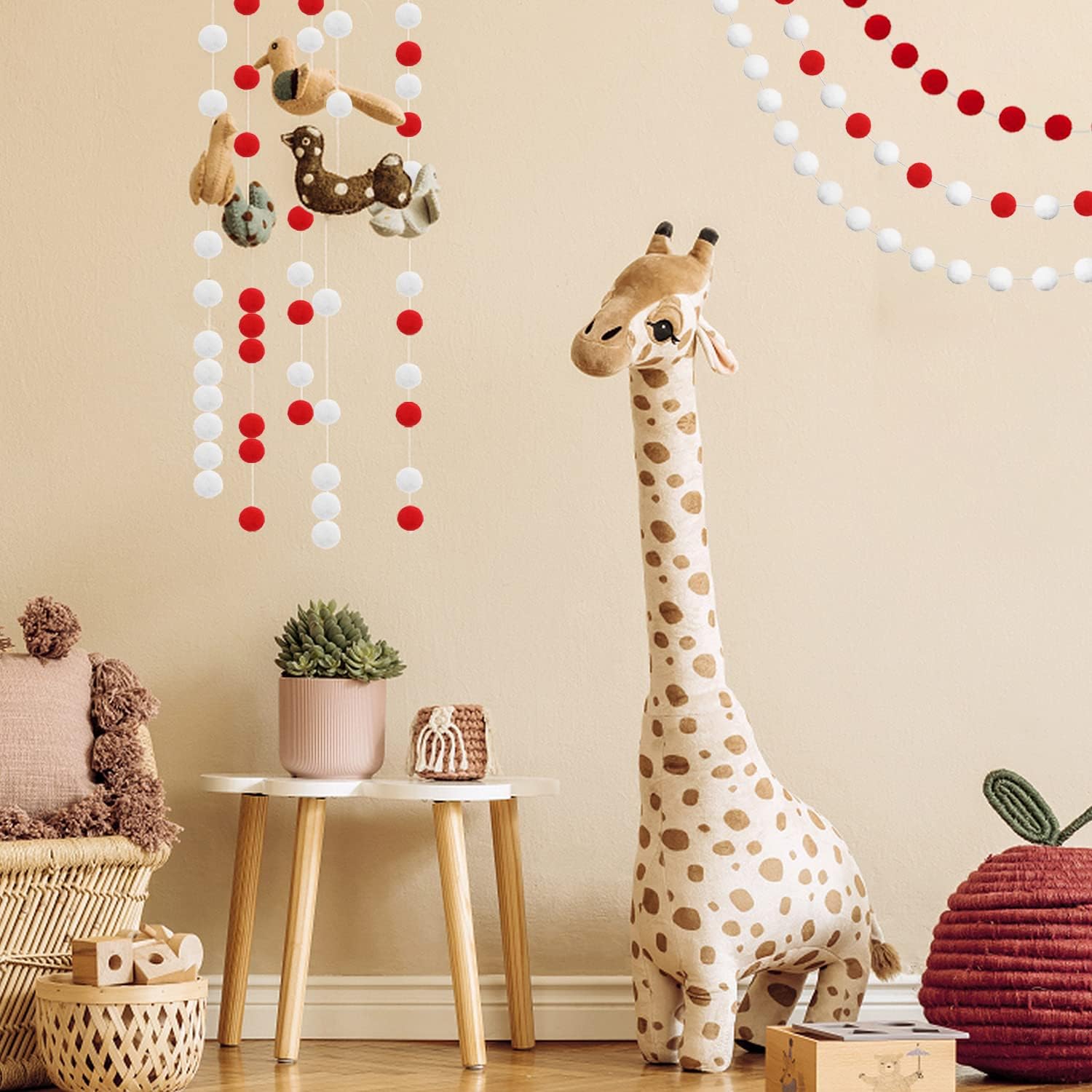 - RED FELT BERRY CHRISTMAS GARLAND PACK OF 3: Each Felt Ball Pom Pom Garland contains 24 Pom Pom Balls, 6.6 feet/ 2m long and the Pom Pom Ball is 25mm in diameter, no knots in the felt pom pom garland, so the distance between the felt balls and the length of the garland can be adjusted. Jishi 3 strands of elegant felt ball garland set will meet your daily, festive holiday, christmas, birthday and parties decoration needs. NOTE: Winding Risk May Exist, Please Keep Away from Kids Under 3 Years Old.