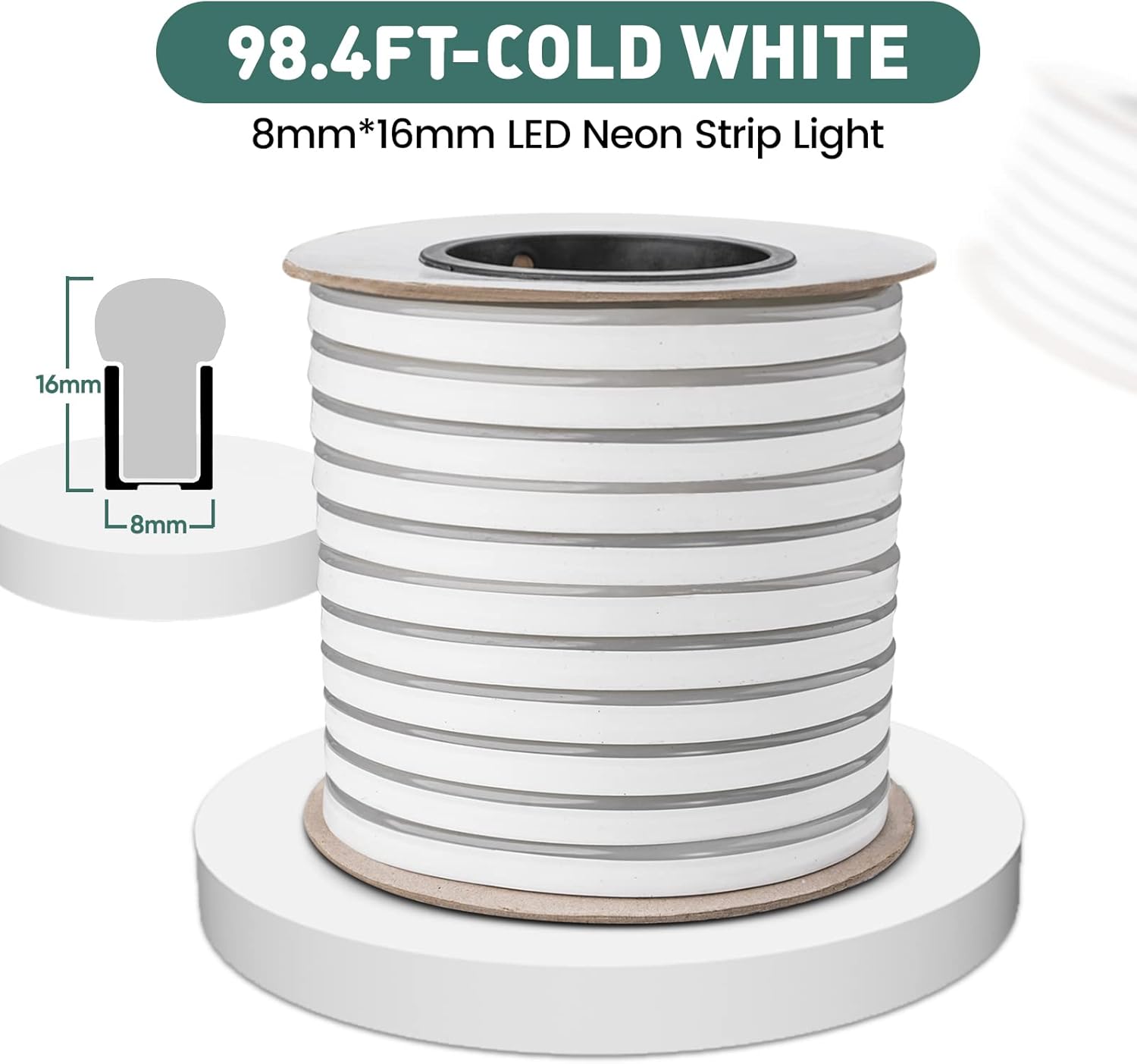 GZBtech Flexible LED Neon Rope Lights 100FT,AC 110-120V Waterproof Strip Light, 120 LEDs/M Cuttable Connectable Neon Lighting for Indoor Outdoor Home Decor/Commercial Building Use-Cold White 30M